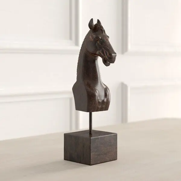 - For the equestrian-lover in your life, this horse head bust adds a touch of artful intrigue to any space. Crated from rustic polyresin finished in a rich mahogany hue, this piece makes a perfect addition to any bookshelf or living room mantel.