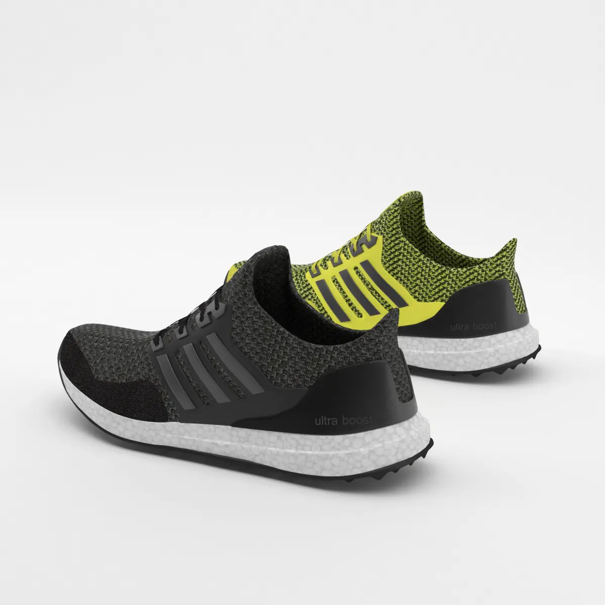 This is the adidas ultra boost running shoes for men. Two color included, black and yellow version.This 3D model is composed of breathable mesh knit with lace closure, rubber logo, styrofoam base.