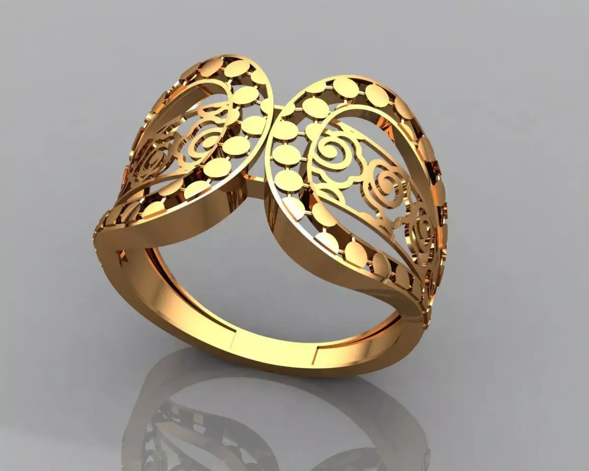 Adjustable design suitable for multiple finger sizesProduction-ready 3D model of an adjustable wide gold filigree ring.Openwork lattice design optimized for laser cutting and gold casting.Clean geometry with balanced wall thickness for professional jewelry manufacturing.This statement ring features an elegant filigree pattern combined with an adjustable open band structure, making it suitable for multiple finger sizes.The design is ideal for luxury jewelry collections, custom orders, and Middle Eastern inspired gold jewelry.