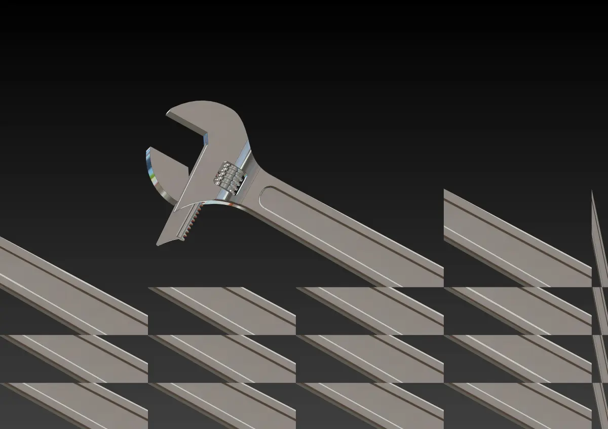 The 3D modeling design of an adjustable wrench involves creating a detailed and precise digital representation of the tool, focusing on its functionality, ergonomics, and manufacturing feasibility. The 3D modeling process ensures that the adjustable wrench design is both practical and manufacturable, ready for prototyping and production