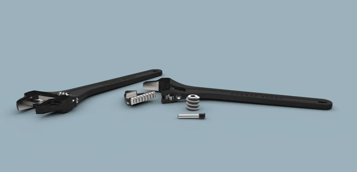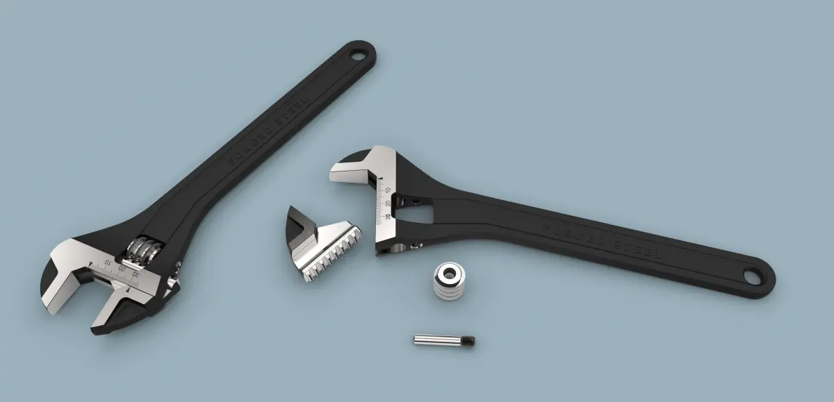 Highly detailed model of adjustable wrench.