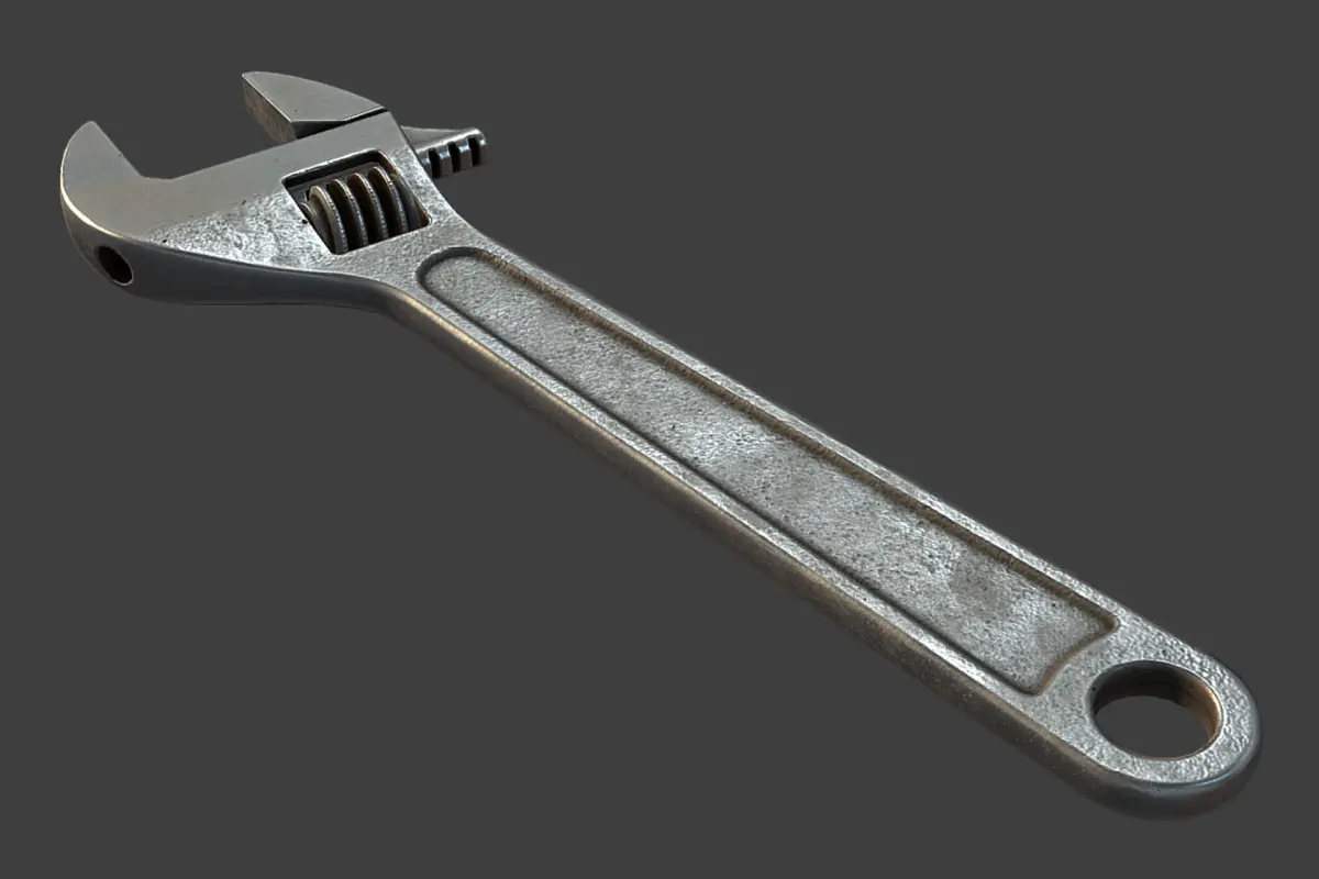 Adjustable Wrench low-poly 3d model ready for Virtual Reality (VR), Augmented Reality (AR), games and other real-time apps.