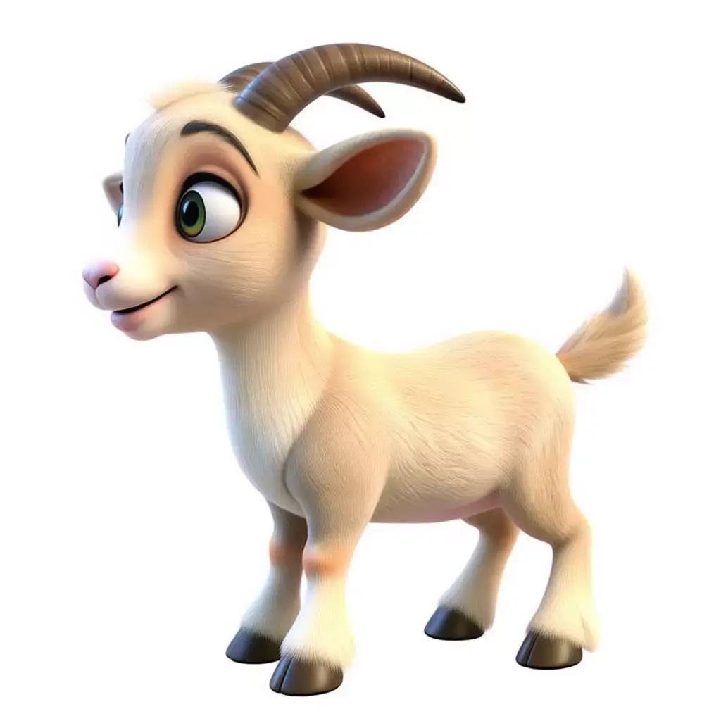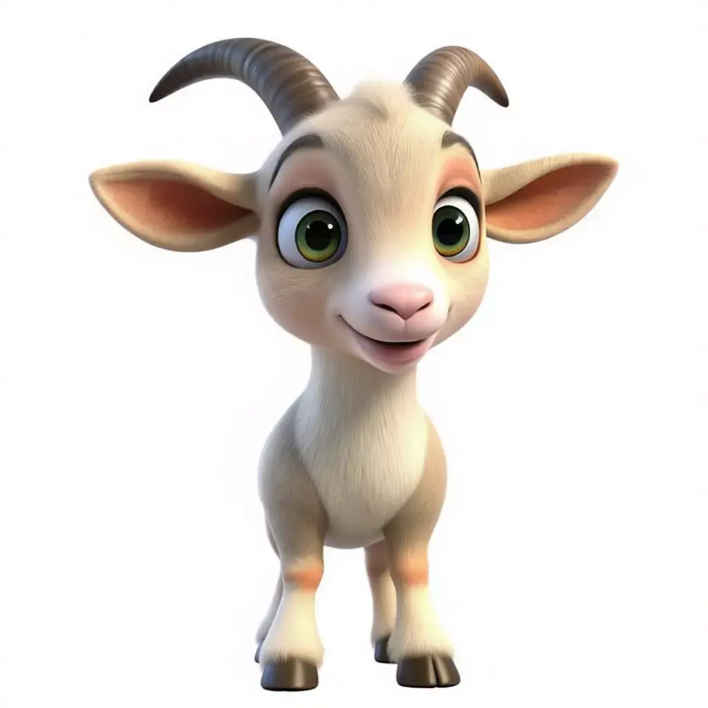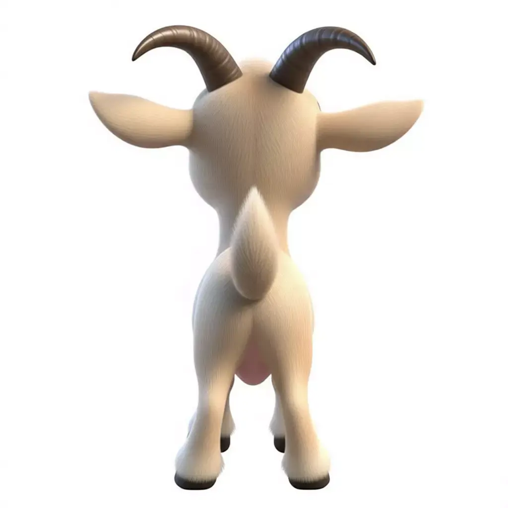 Environmentally, the neutral background allows effortless integration into any scene: pastoral meadows, enchanted forests, farmyards, school classrooms, or even surreal dreamscapes. Lighting can be adjusted to simulate morning sunbeams, cozy indoor glow, or magical twilight—all enhancing the character’s inherent warmth. For creators, educators, studios, or NFT artists, this goat offers unmatched versatility: ideal for mascots, storybook illustrations, interactive learning modules, toy product visualizations, or social media content where cuteness drives engagement.
