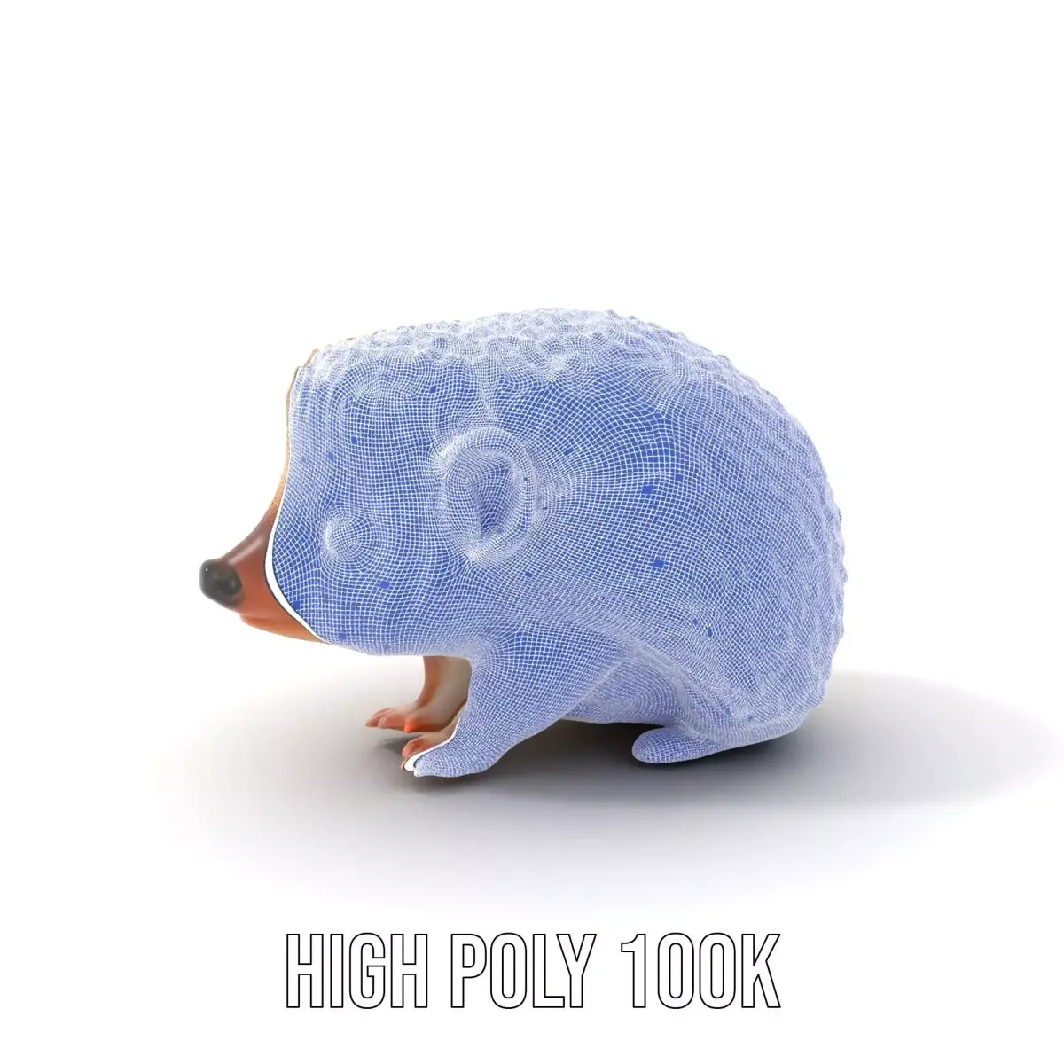 This adorable hedgehog model pack is perfect for adding a touch of nature and cuteness to any scene. Each model has 3 levels of detail: low-poly (1000 triangles for mobile), middle-poly (10,000 triangles for environment), and high-poly (100,000 triangles), which allows for the use of this model in production rendering (such as 3ds Max, Maya, Cinema4D, Blender, Vray/Corona/Cycles, and all others), game engines (Unity and Unreal compatible), and interactive presentations, providing a choice of detail based on the LOD System principle. This hedgehog model is ideal for use in educational projects, nature-related games, and animation scenes requiring realistic animal figures. The model's textures are PBR, Diffuse, NormalMap, and reflection/roughness/metallic, ensuring suitability for any modern rendering engine. All models are accurately unwrapped and have no overlapping UV. All textures are 4096x4096 in size. If you like the model, please leave a like and a comment.