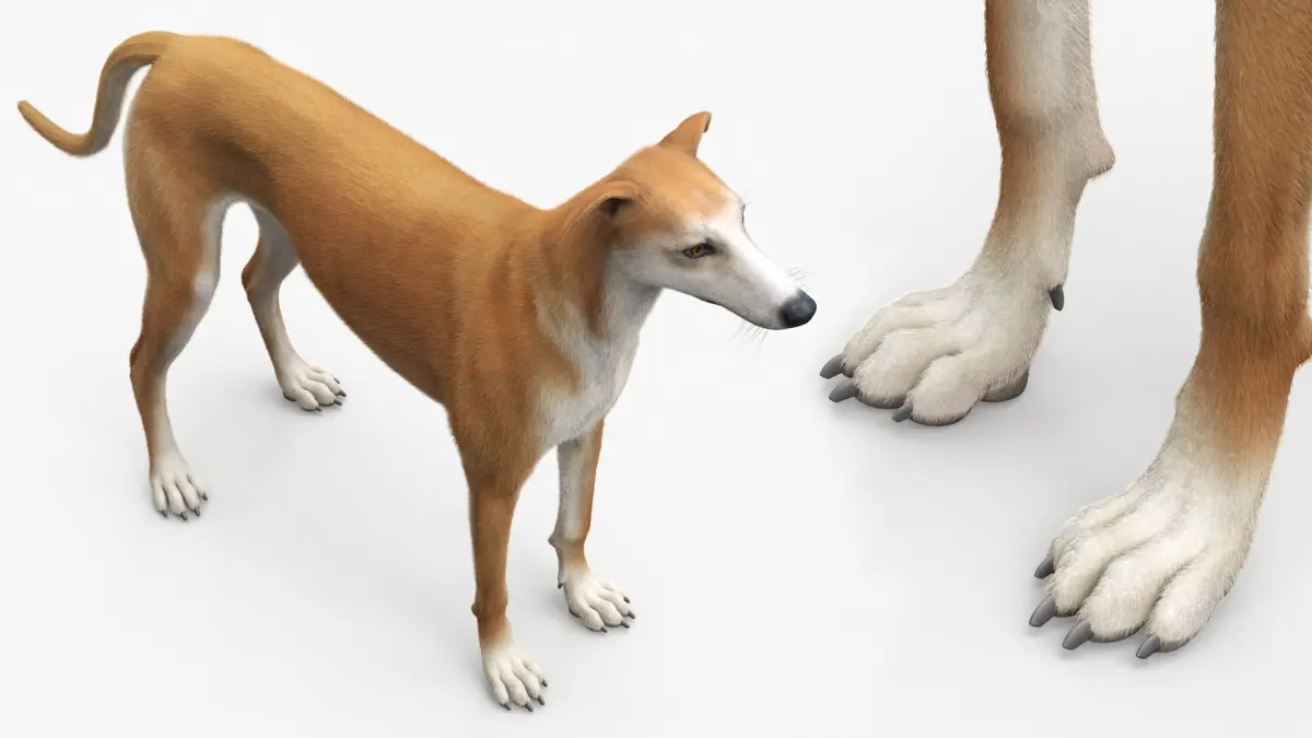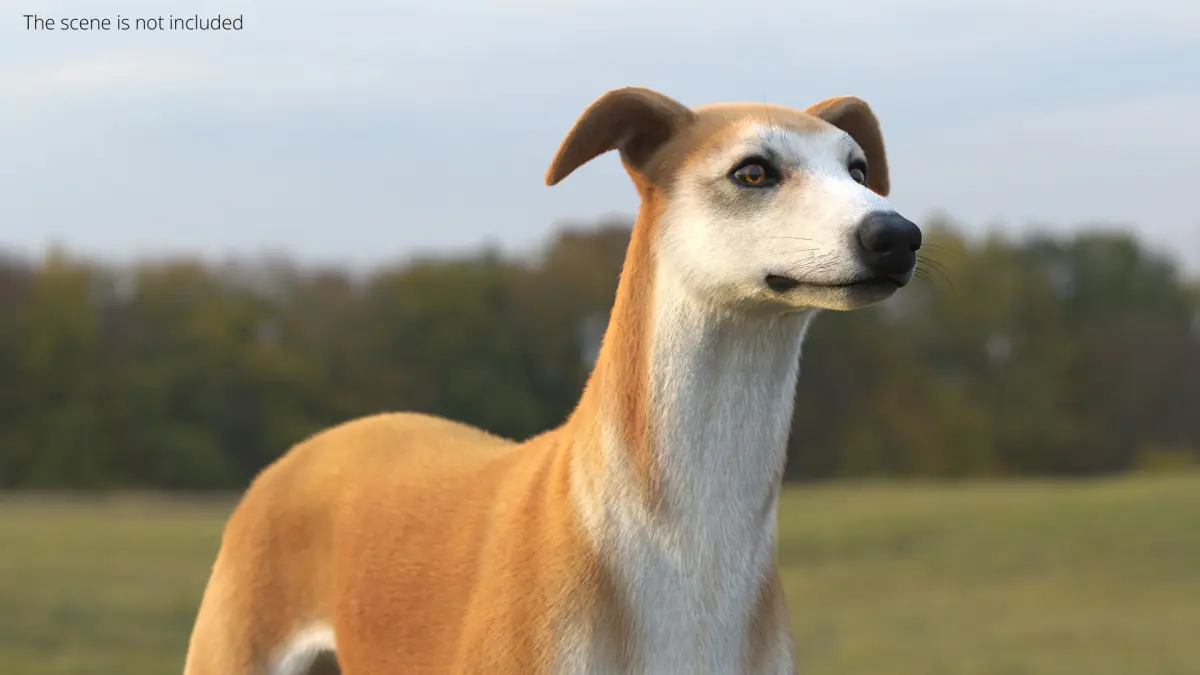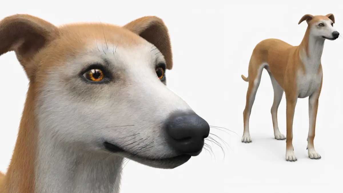 Adult Racing Greyhound Male Fawn Fur for Maya is a three-dimensional model of Greyhound (Canis lupus familiaris), that is a slender, athletic breed known for its exceptional speed and graceful posture.