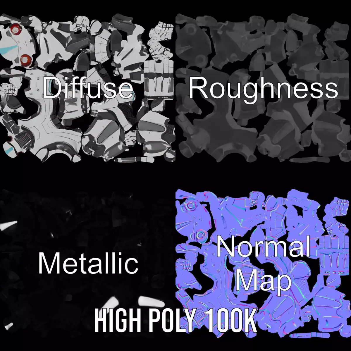 This advanced futuristic robot model pack is perfect for sci-fi scenes, animated films, or game development. Each model has 3 levels of detail: low-poly (1000 triangles for mobile), middle-poly (10,000 triangles for environment), and high-poly (100,000 triangles), which allows for the use of this model in production rendering (such as 3ds Max, Maya, Cinema4D, Blender, Vray/Corona/Cycles and all other), game engines (Unity and Unreal compatible), and interactive presentations, providing a choice of detail based on the LOD System principle. The robot features articulated limbs and detailed textures in PBR, Diffuse, NormalMap, and reflection/roughness/metallic, which are suitable for any modern rendering engine. The models are accurately unwrapped with no overlapping UVs. Ideal for cinematic projects, animation, and virtual reality showcases. All textures are 4096*4096 in size.