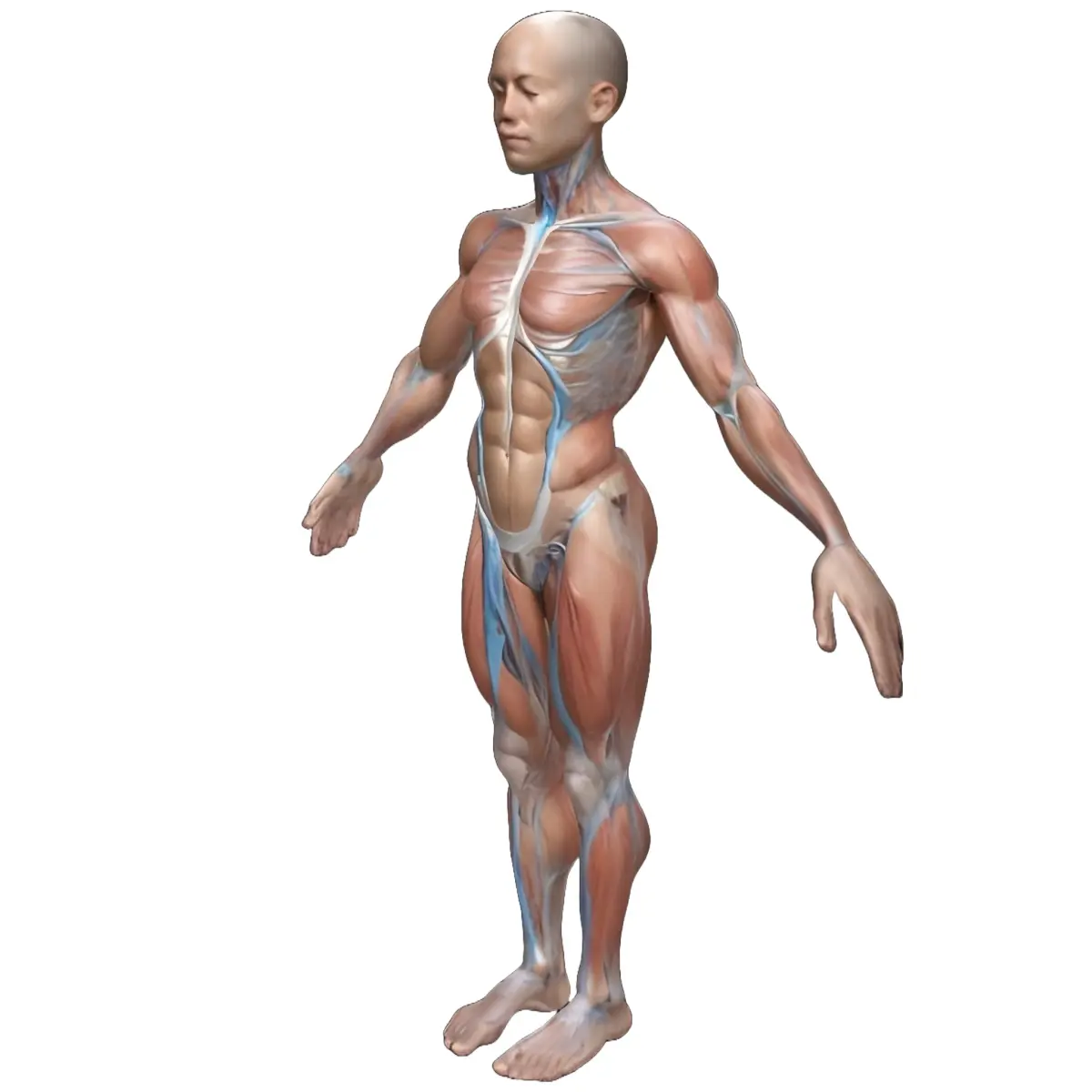 - One anatomical muscle layer study showing detailed musculature and tissue
