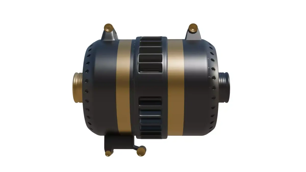 This high-detail Sci-Fi Turbine Generator / Motor is a futuristic industrial power core designed for games, cinematics, simulations, and hard-surface projects. The model features a compact cylindrical body with metallic gold accents, precision ventilation panels, reinforced mounting brackets, and a detailed threaded front connector — perfect for power modules, reactor rooms, engine bays, and sci-fi environments.