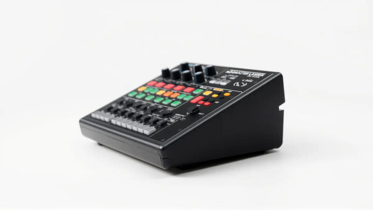 This advanced sound mixer model is perfect for audio-visual projects, offering various control interfaces and LED feedback. Ideal for visualization in music production, virtual concerts, or studio simulations.