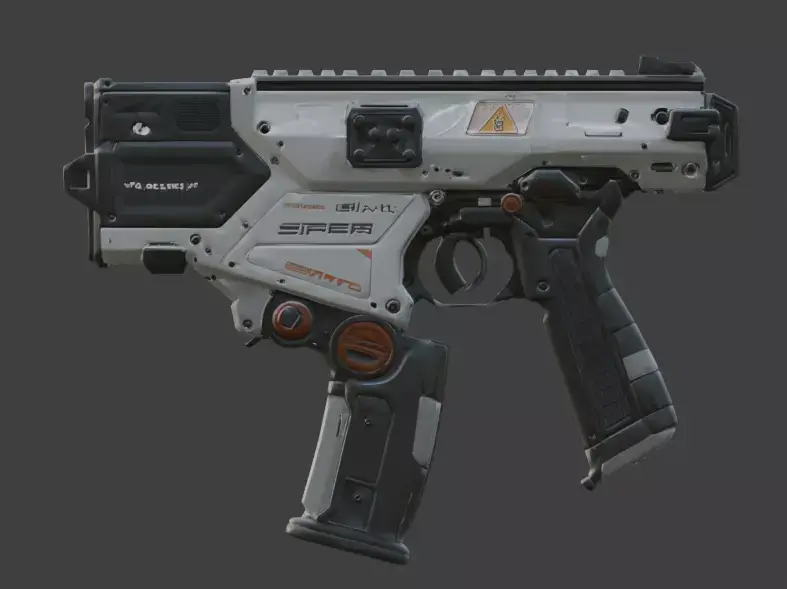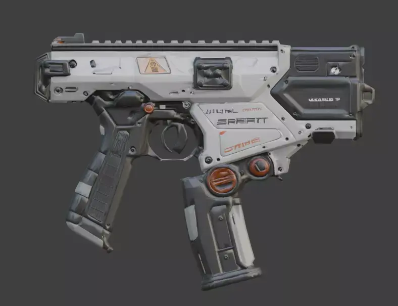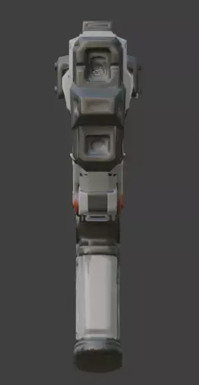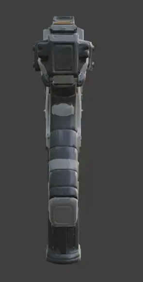 The design highlights a robust, ergonomic chassis featuring a secondary stabilizing grip, integrated top-mounted tactical rails, and a large circular sensor aperture. To enhance its utility, the device includes various functional mechanical details, such as a specialized data-link module and instructional technical decals. Engineered with an ultra-efficient low-poly count under 5,000 polygons, this asset is perfectly optimized for real-time game engines, VR/AR applications, and high-performance mobile environments.