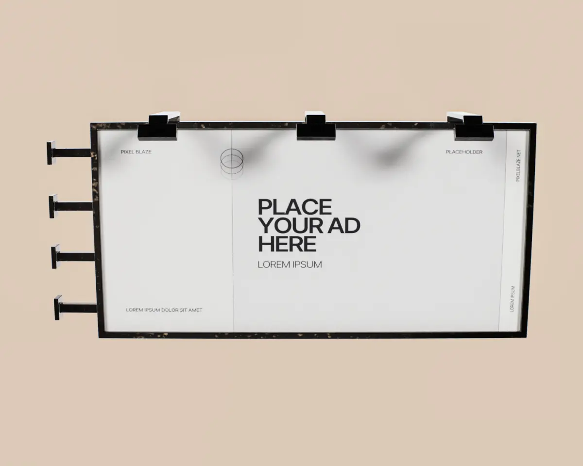Realistic game-ready low-poly 3D model with clean topology. The billboard's advertising panel has a 16:9 aspect ratio.