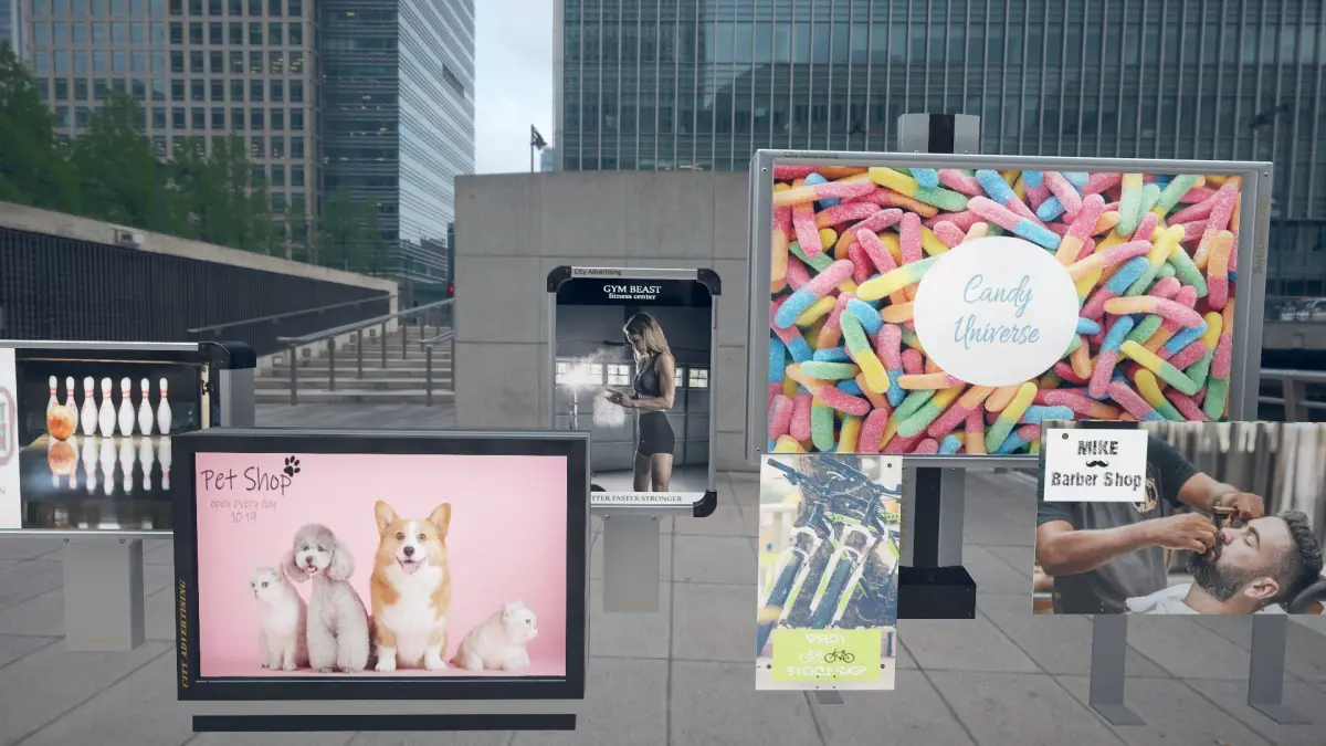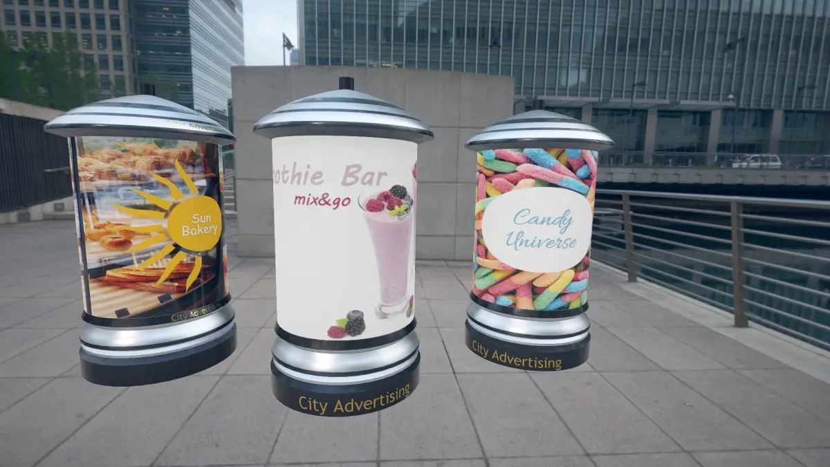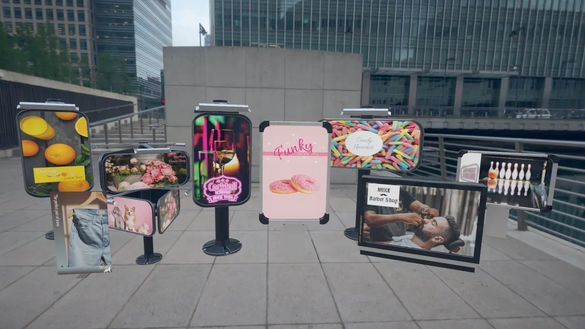 Note: The city scene shown in the images is not included in this pack, only the advertising panels!