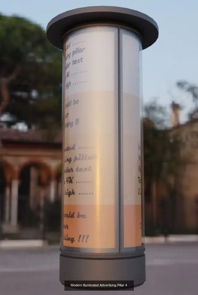Here is a collection with 5 modern illuminated advertising pillars.