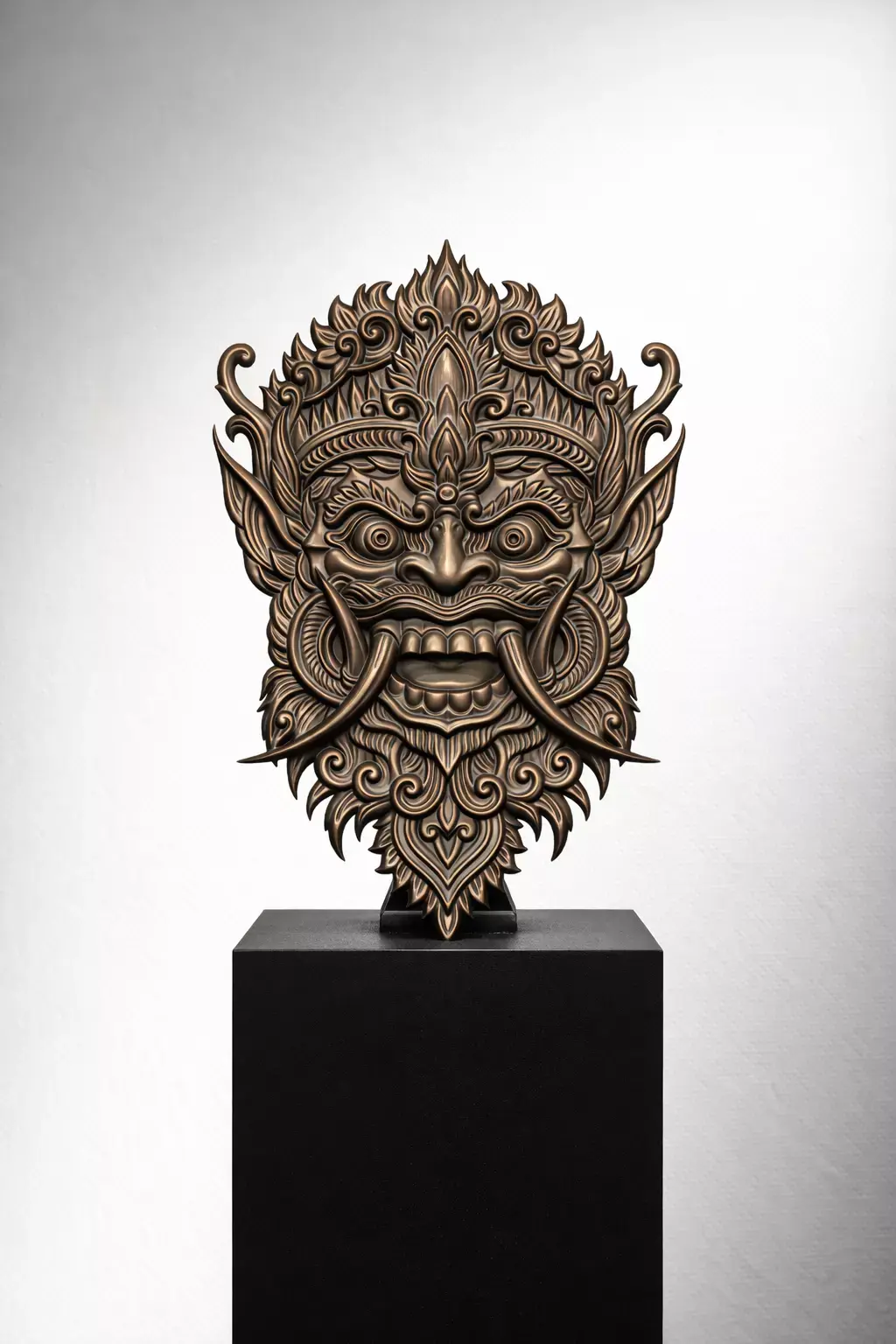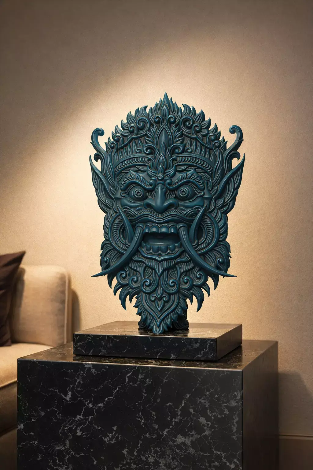 Highly detailed mythic guardian mask sculptureOrnamental, symmetrical, and architecturally balanced designIdeal for tabletop decor, wall accent, or relief carvingSuitable for CNC stone carving, marble, sandstone, bronze, or resinClean, non-copyrighted, fantasy-based designProfessional-quality sculpting with strong depth and definition