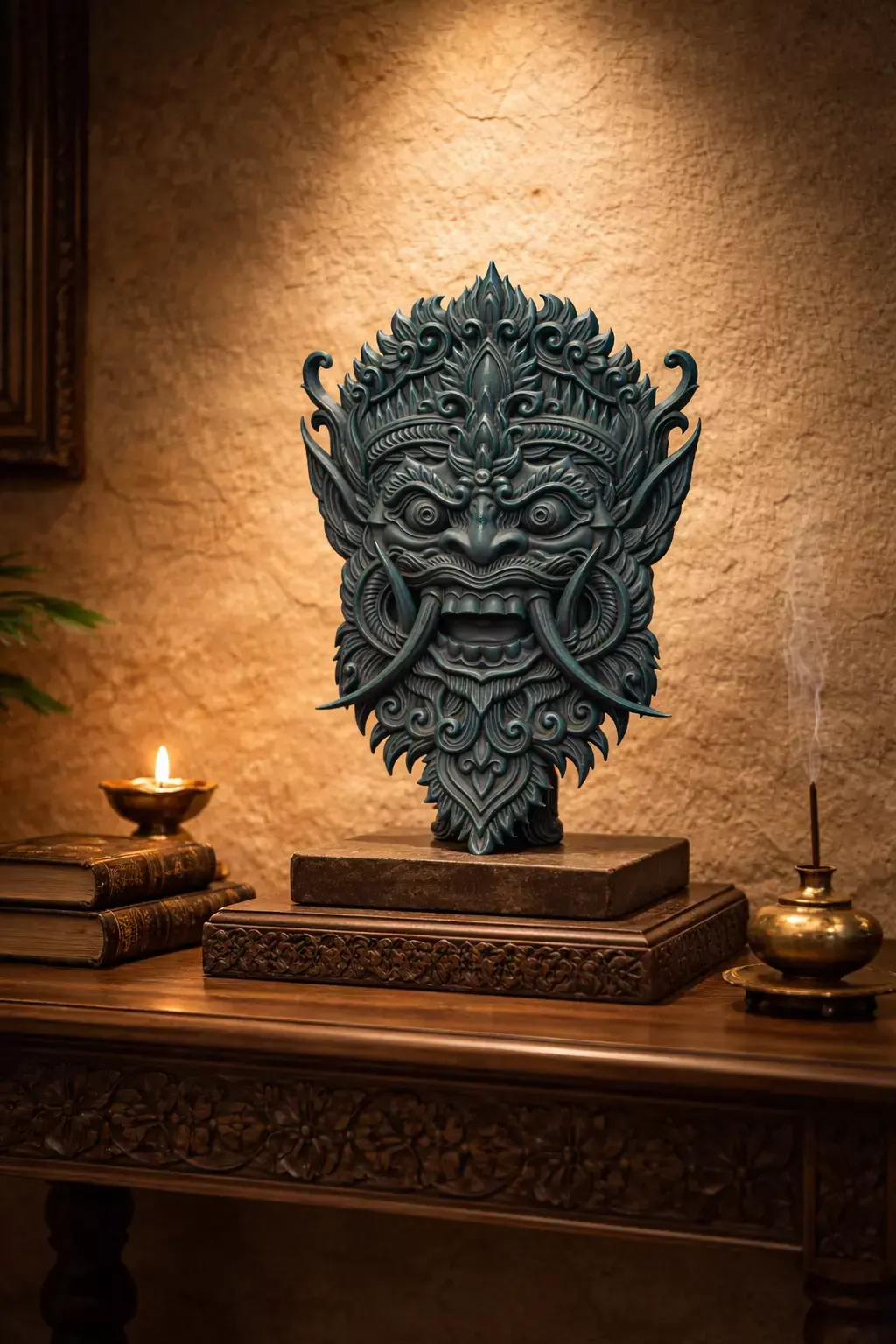 Luxury living room or entry console decorHeritage / temple-inspired interiorsHotel lobby or reception displayGallery-style interior stylingArchitectural visualization & concept art