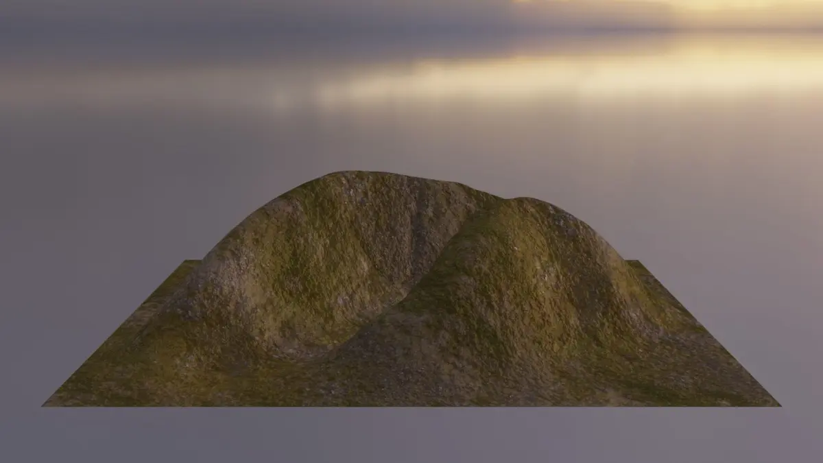 Aerial grassy and rocky terrain / mountain, ready to render with Eevee and Cycles in Blender.
