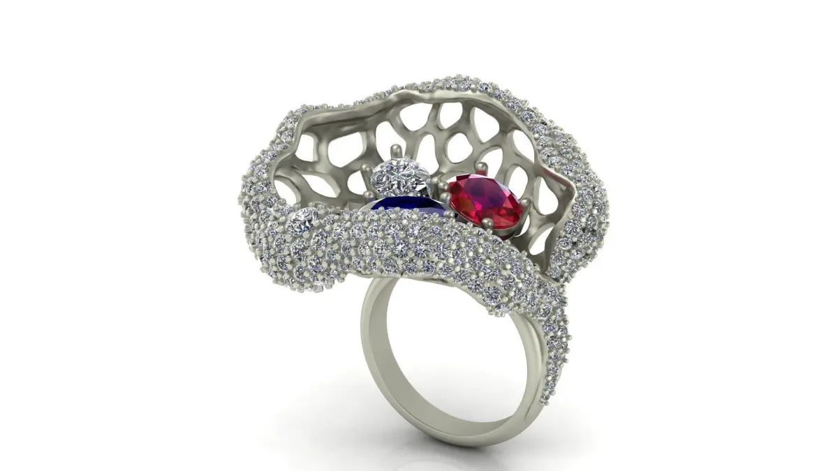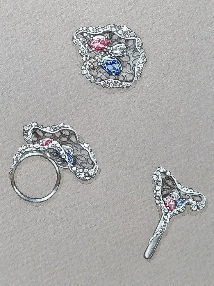 Aerial Ring with diamonds ,( SAPPHIRE,RUBIN,diamond PEAR.) Recommended material - GOLD Any questions? Please contact me. Thank you!