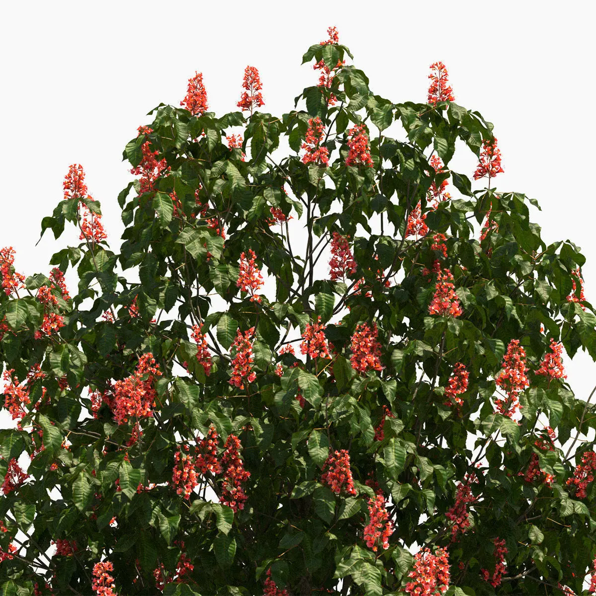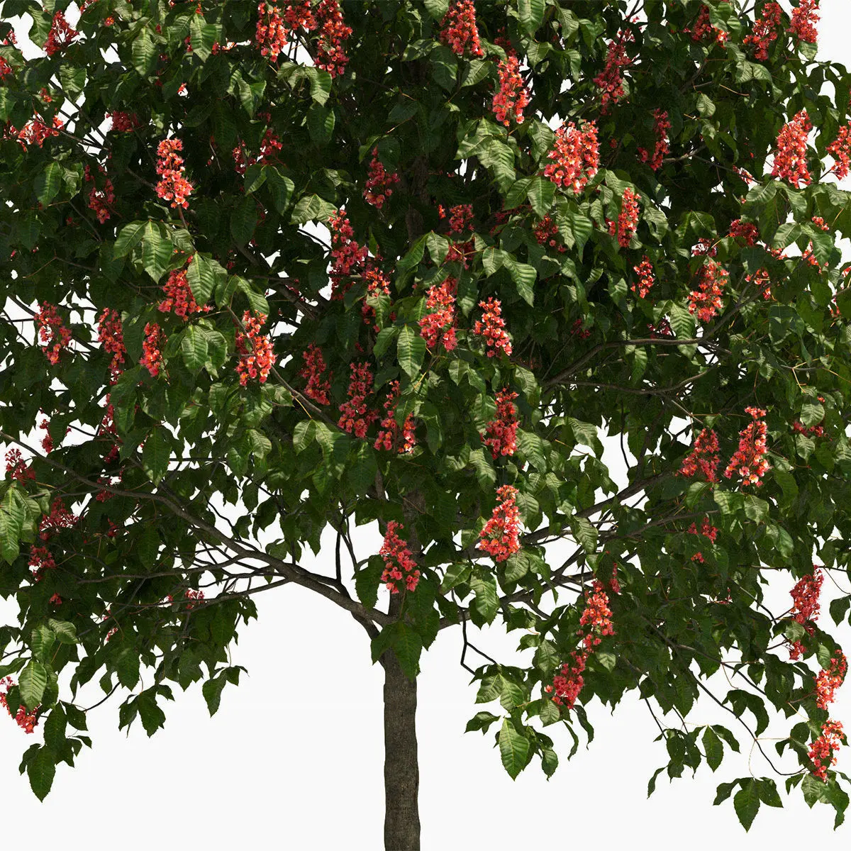 - high detailed 3D flowering red horse chestnut tree in spring