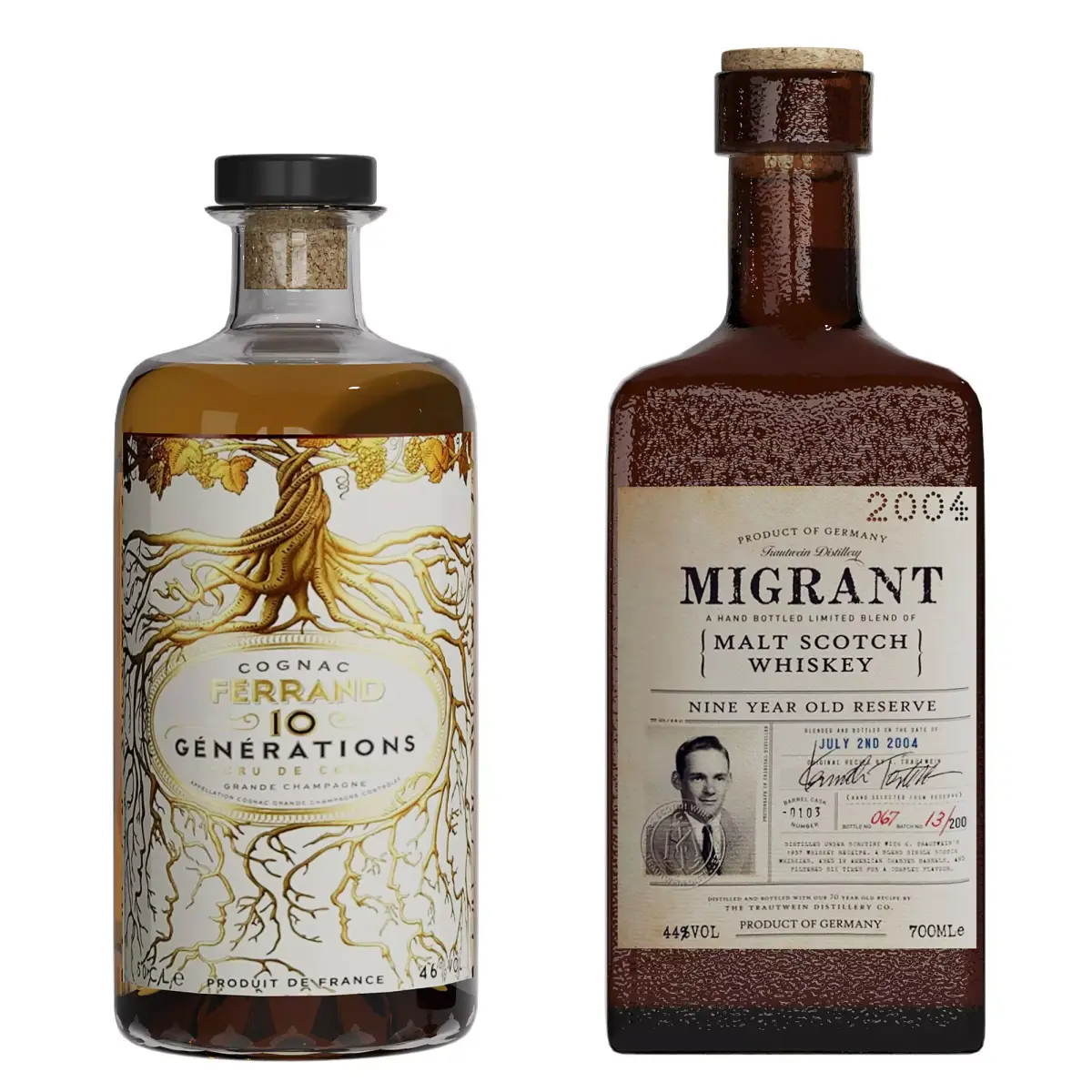 A set of aesthetically pleasing retro-style alcohol bottles to fill shelves in your kitchen, bar, store or restaurant.