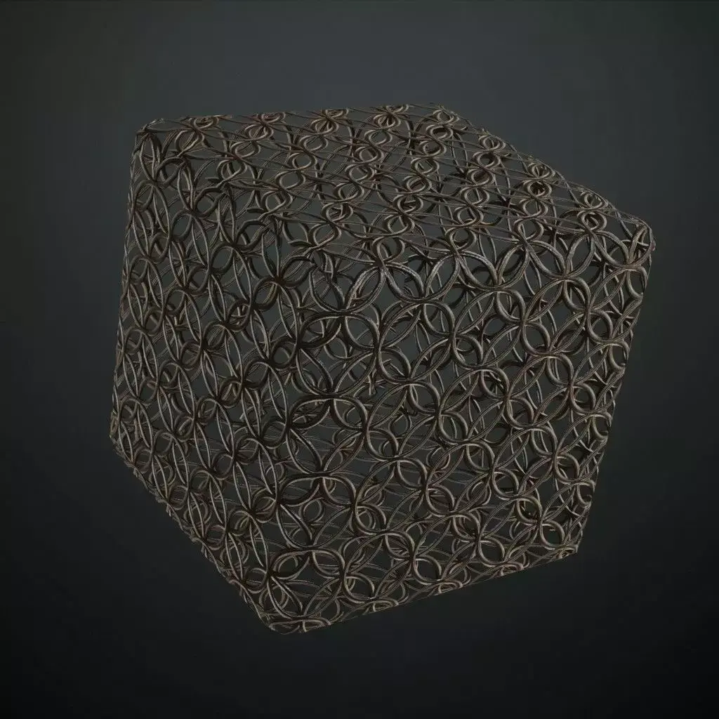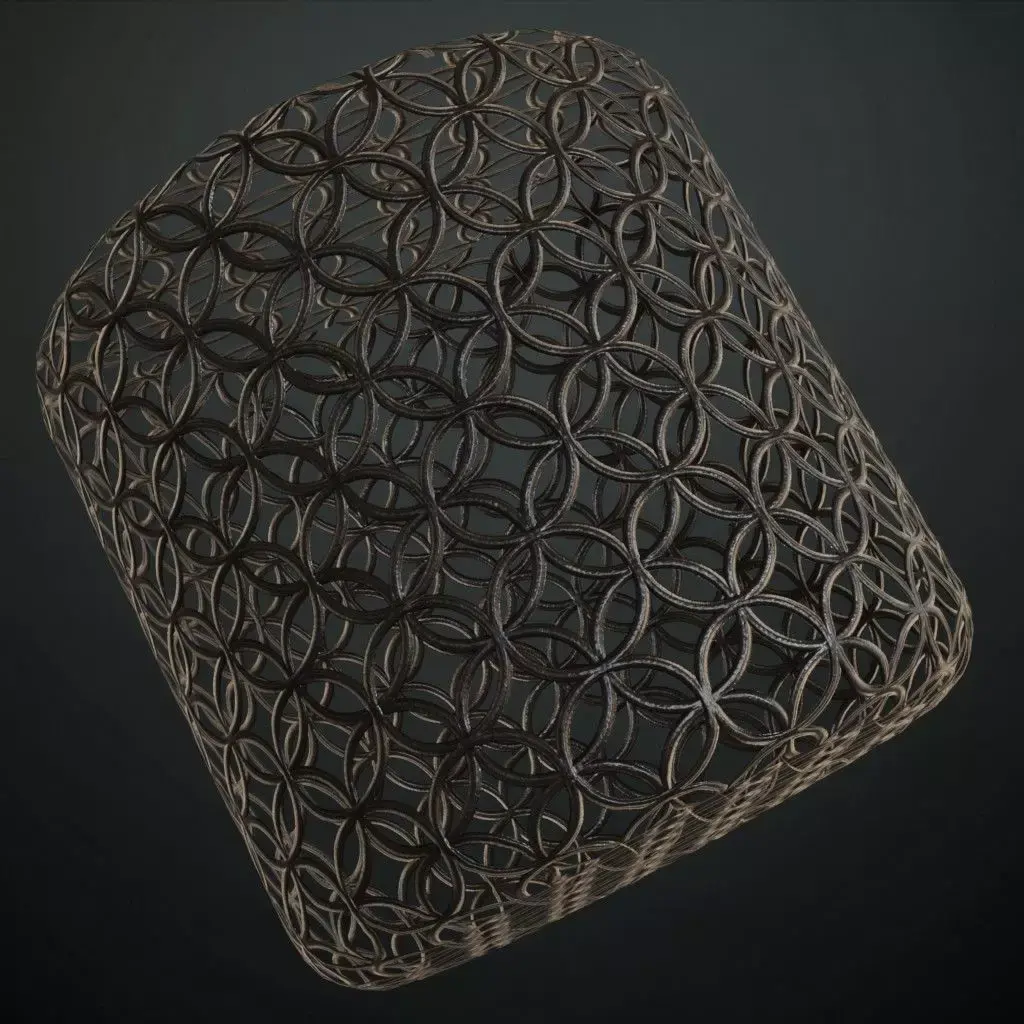 This is a PBR Texture Pack of Aesthetic Overlapping Circle Iron Guard. All the maps such as BaseColor, Normal, Roughness, Height, Metallic, and Opacity are provided as per requirement.