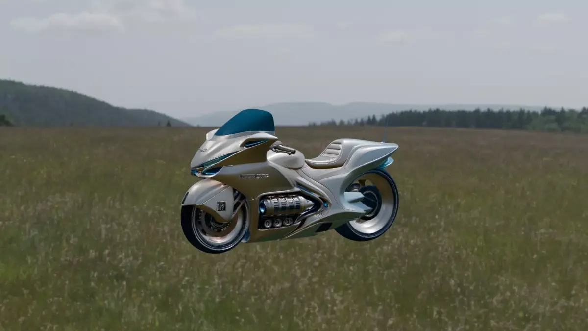 The Aether Glide X1 is a futuristic concept motorcycle that blends luxury design with advanced aerodynamic engineering. Its smooth, flowing bodywork features a seamless metallic finish accented by soft blue energy lines, giving it a sci-fi elegance and a sense of motion even at rest. The enclosed front fairing and elongated rear section are designed for maximum air efficiency and stability at high speeds.The bike showcases a powerful exposed engine core with a turbine-inspired layout, suggesting hybrid or energy-assisted propulsion. Wide rims, low-profile tires, and a floating rear-wheel design enhance its cutting-edge appearance, while the ergonomic seat and integrated controls emphasize rider comfort and control.Perfect for: