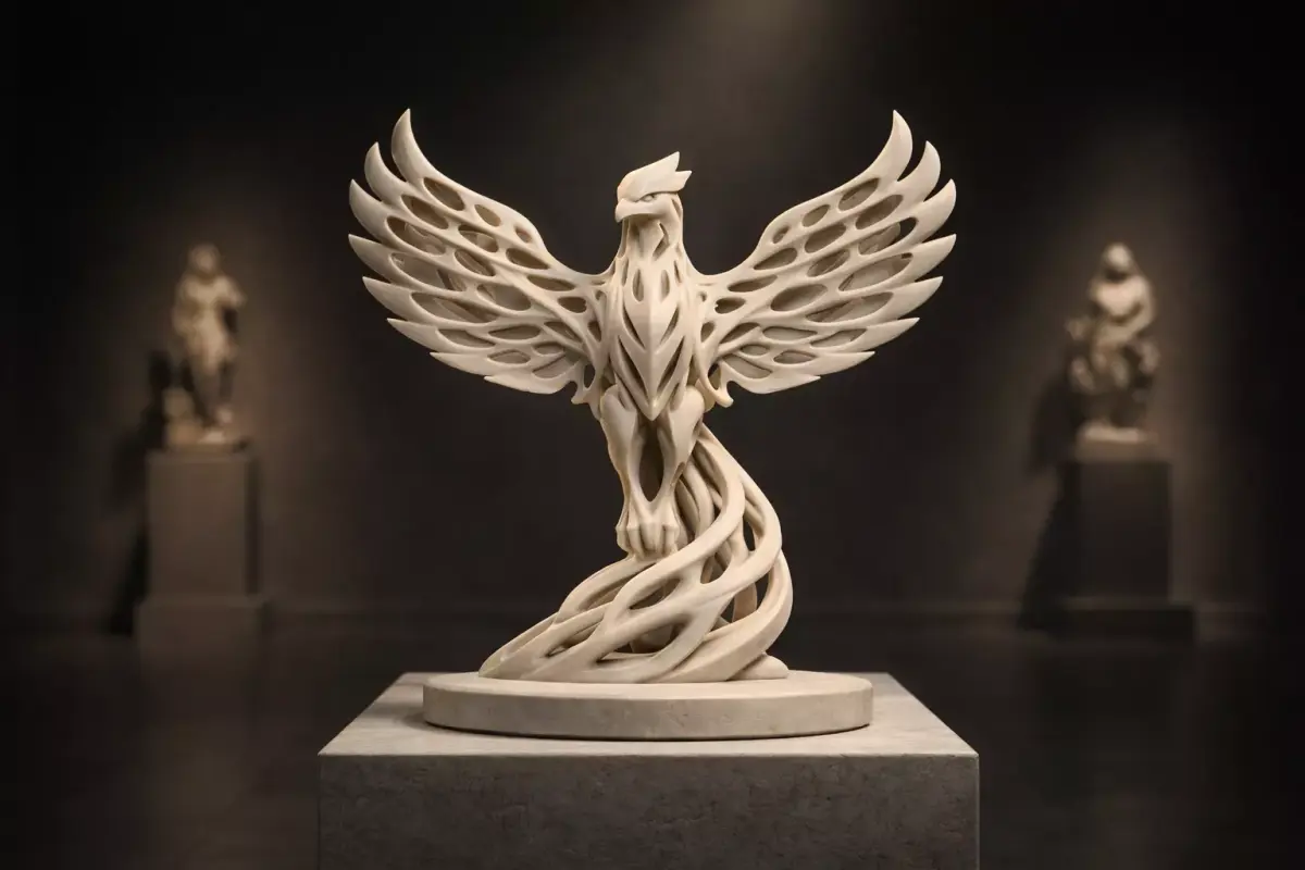 High-detail futuristic phoenix sculptureClean manifold geometryOptimized for 3D printingAbstract & parametric lattice designStrong silhouette for renders and thumbnailsSuitable for decor, collectibles, and concept art