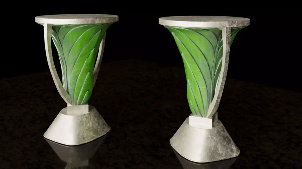 Symbolic blend of strength and vitality through metallic and organic forms.