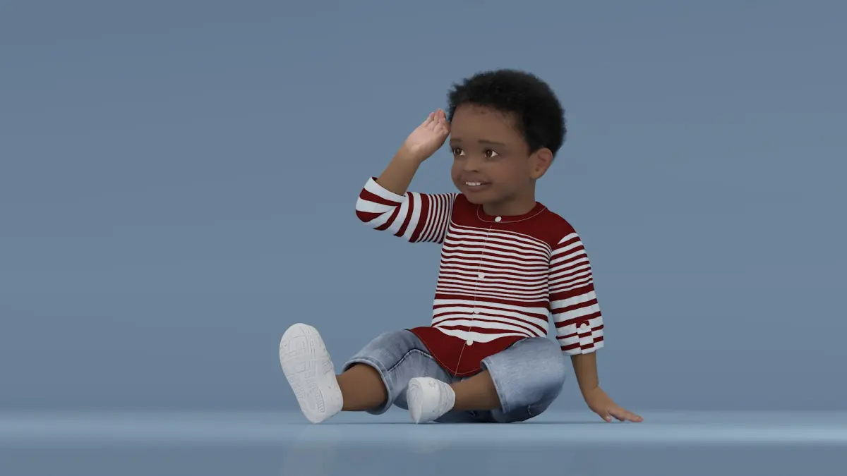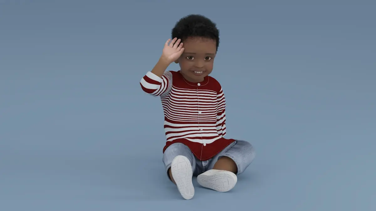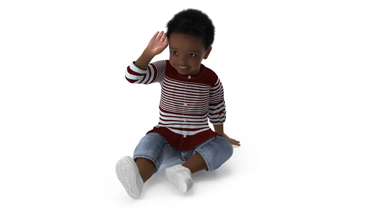African Baby Boy Light Skin in Summer Outfit Sitting is a high quality, photo real 3d model that will enhance detail and realism to any of your rendering projects. The model has a fully textured, detailed design that allows for close-up renders, and was originally modeled in 3ds Max 2014 and rendered with V-Ray. Renders have no postprocessing!