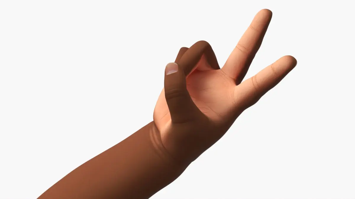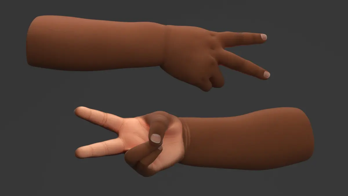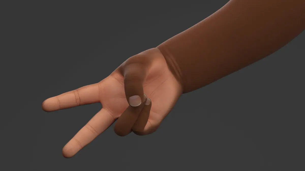African Baby Hand Victory Gesture is a three-dimensional model of symbolic hand gesture depicting an infant's hand forming a "V" shape, representing victory, peace, or resilience.