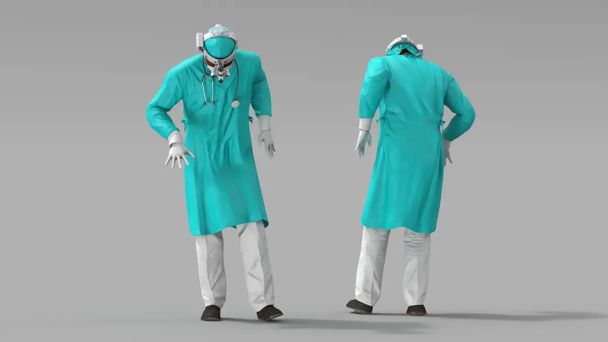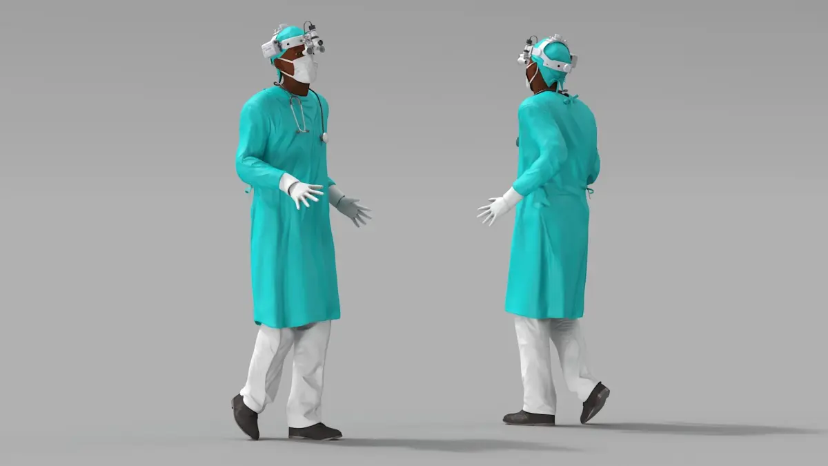 For medical education, healthcare training simulations, character design in animations, virtual reality medical environments, promotional materials for medical technology, surgical training, and healthcare marketing, educational, or promotional projects.