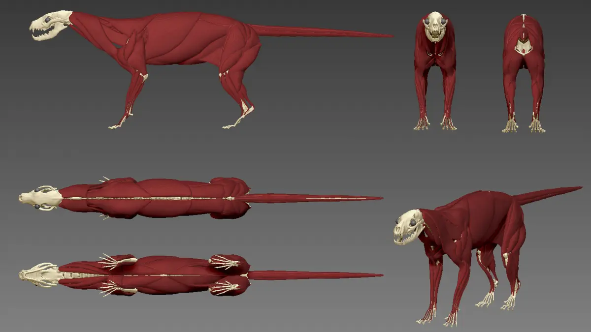 Geometry: The model includes anatomically accurate details such as the bones, musculature, skin, tear ducts, and eyes. This level of detail ensures that the civet is highly realistic, suitable for advanced simulations or close-up shots. Each bone and muscle has been carefully modeled to reflect the natural anatomy of the civet.