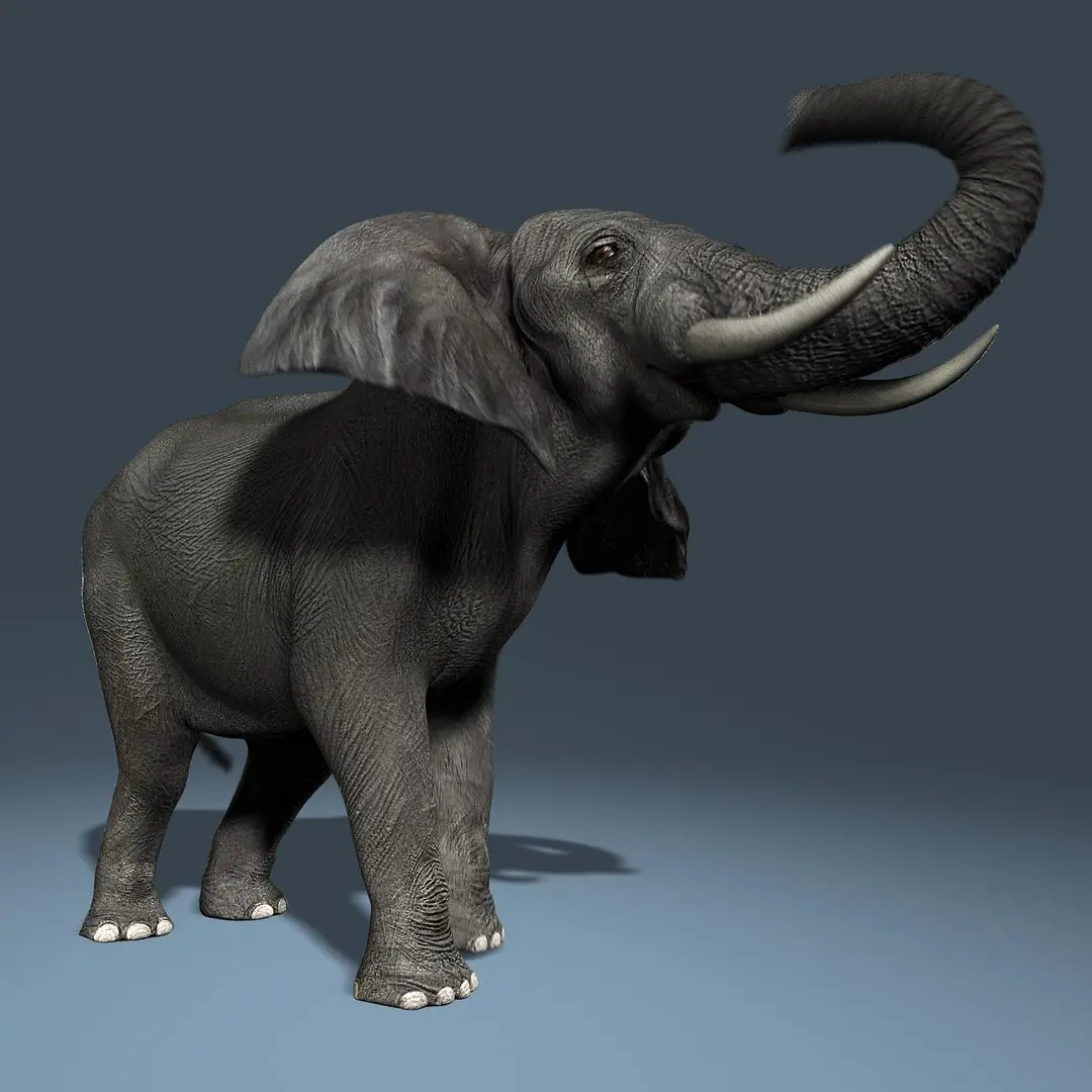 High Detailed Photorealistic African Elephant FULLY RIGGED AND ANIMATED ,UVmapped and smoothable, made with Maya.