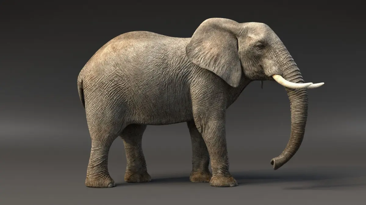 This is a realistic African elephant model with multiple 4K textures in the UDIM format, hair, rigging, and multiple animations. The model is made with Blender and Cycles renderer at real-world scale, and is suitable for Blender 2.91 and above. The model consists of 7 objects: Body, lacrimal glands, pupils, lacrimal caruncles, tongue, teeth, ivory.