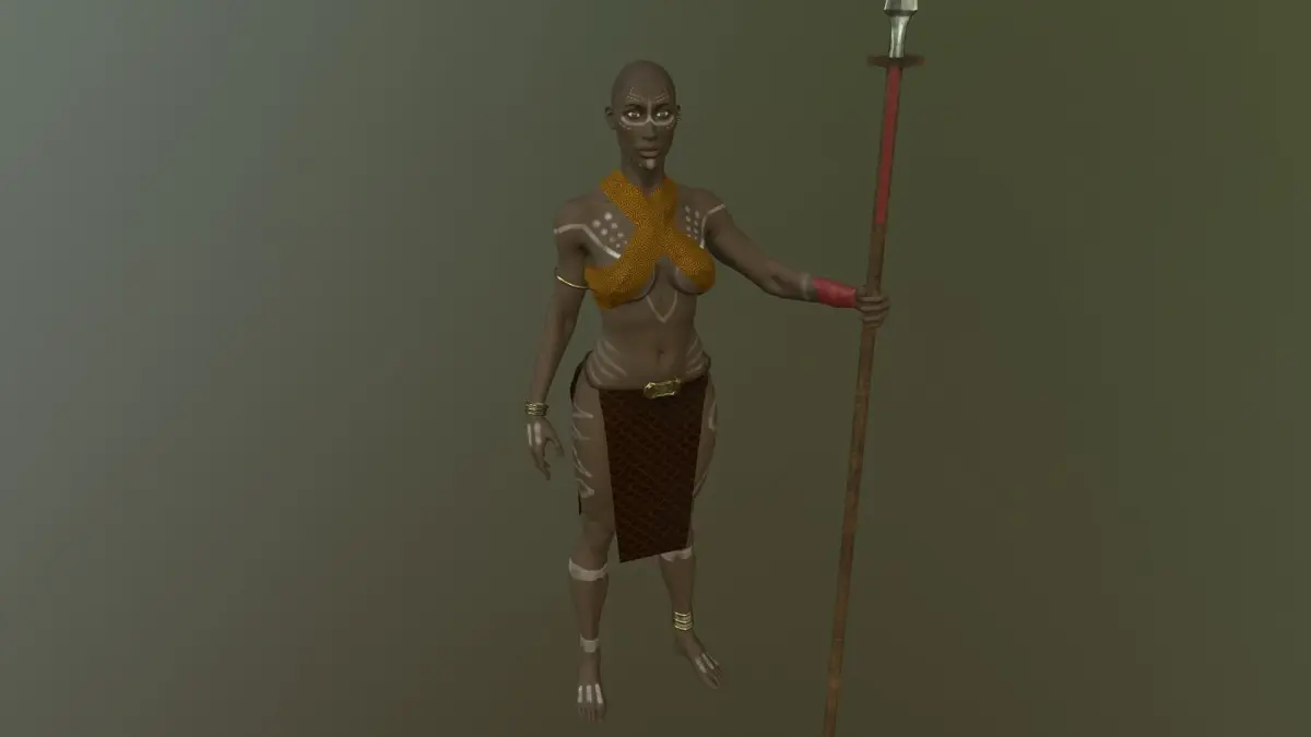 The African girl game ready low poly model for game or other product. Sculpting model in zbrush and rigging in blender. Textures substance painter