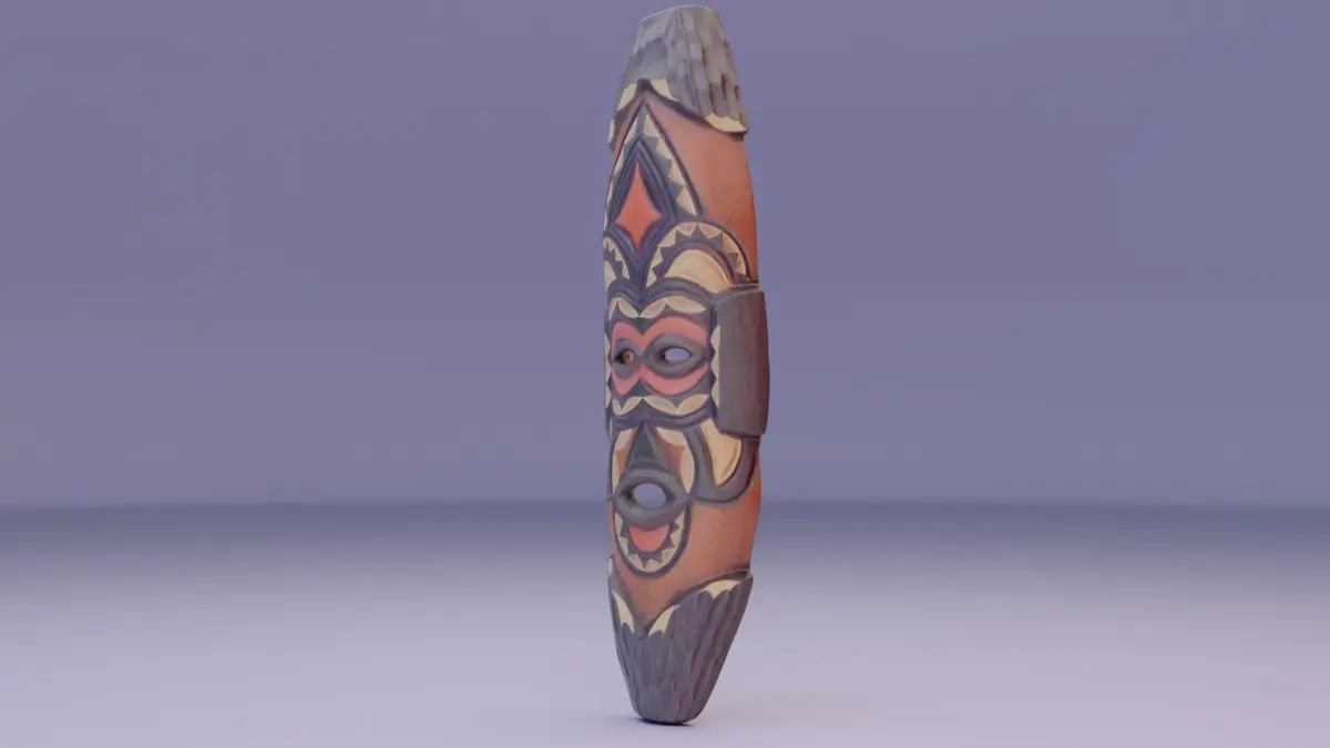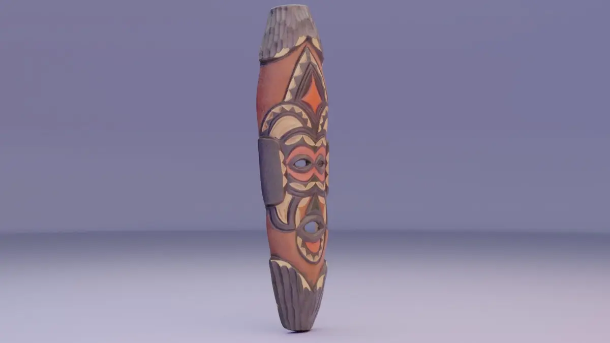 This is a photorealistic low poly 3D model of African mask.