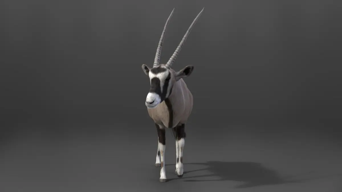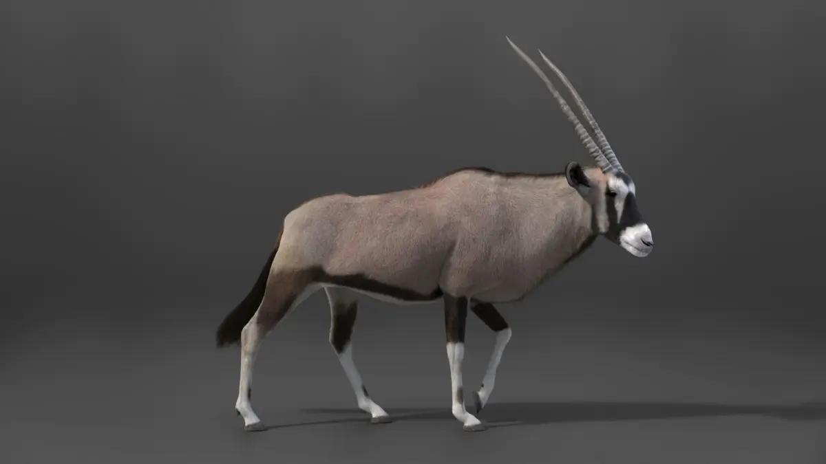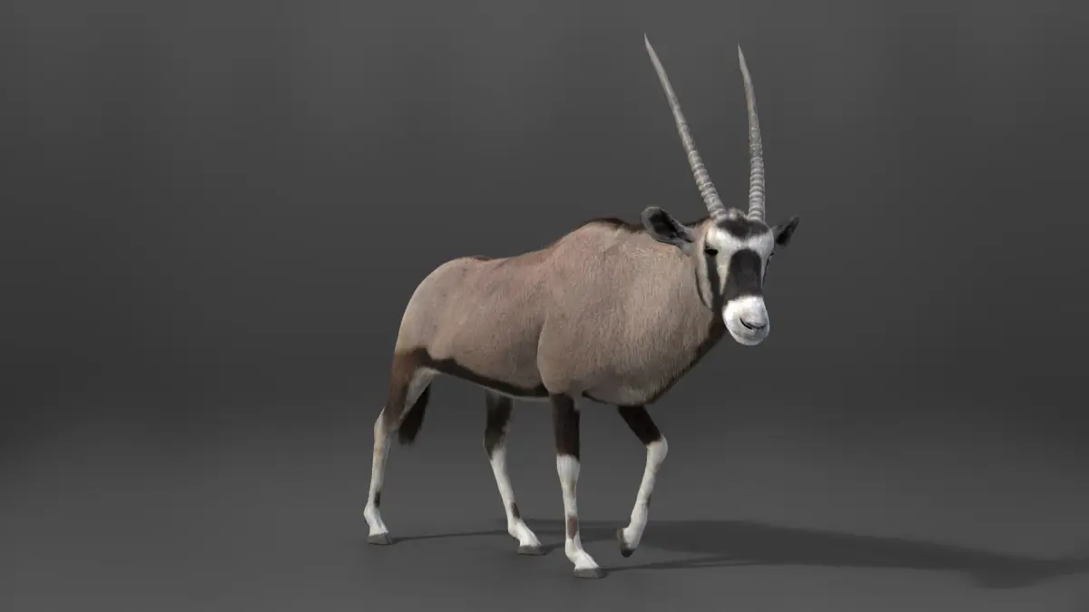 This is a realistic African oryx model made with Cycles renderer at real-world scale, with textures, rigging, animation, and hair. Three different sets of body maps and four walking animations are available, which can be switched freely.