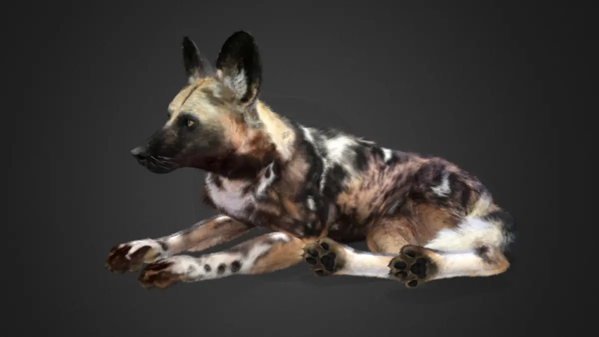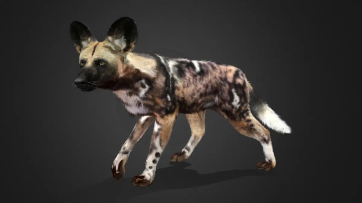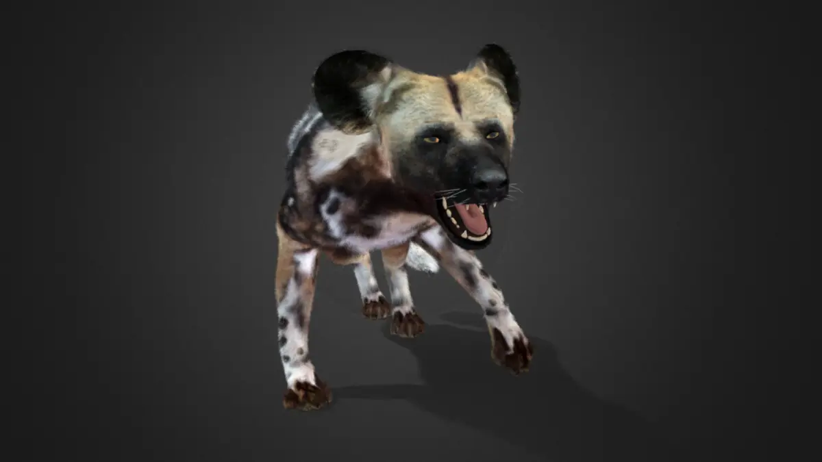 This is a high-quality realistic African wild dog with complete maps, fur, rigging, 26 realistic animations. The model has a realistic muscle structure, a complex hair system created in Blender which makes the hair natural and realistic ( HAIR CARD ). This model is made with Blender and Maya . It consists of the body, eyes, eyelids, oral cavity, tongue, paws.