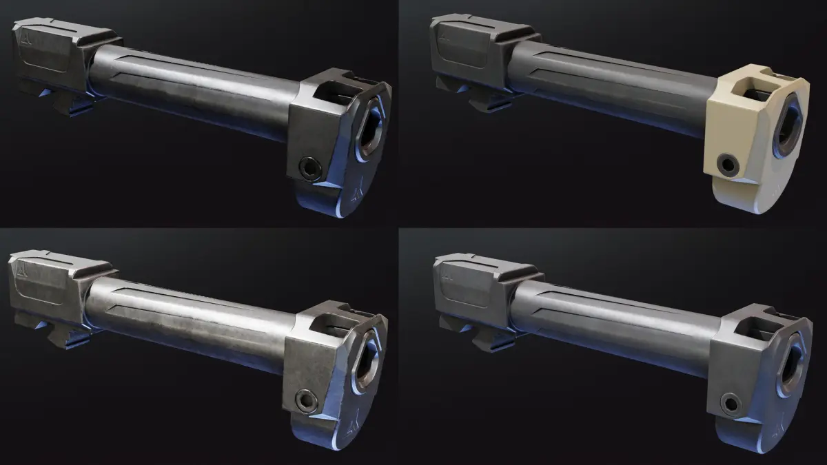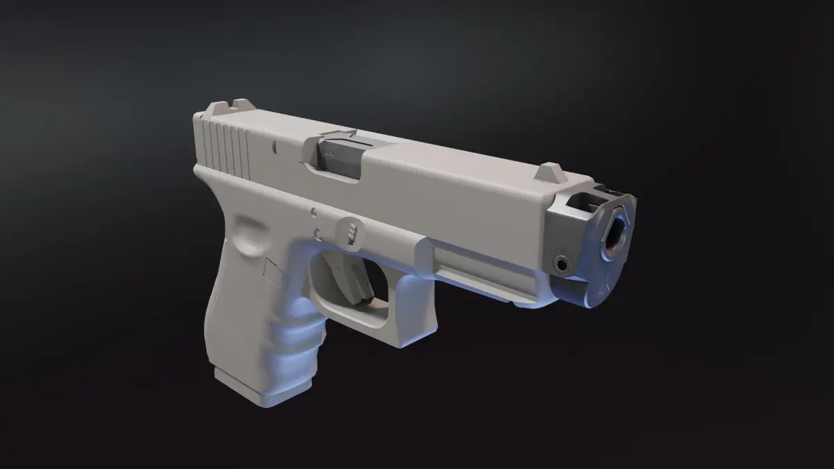 NOTE: I checked 4 different G19gen4 pistol models and they all are different here and there, so even if I managed to get nice blueprints of that compensator and barrel to give it proper proportions, there is a chance that it will not perfectly fit to your gun, thats why I also included second variant that is a bit wider in chamber area, and higher near muzzle. If it still not fit your model, you can send me side and top image of your model(orthographic view) and I will modify it to fit it better.