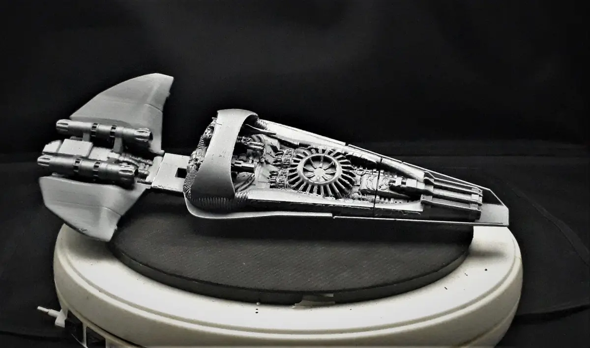Here is the latest MaxLab creation! Also from the world of Wipeout, AG System in 12 parts to be printed and easily assembled. The prototype in the photo is 25cm long, but the high detail content allows a 100% scale and reach 50cm. The hulls of the aircraft can be removed to show all the mechanical parts. Excellent model for resin printing, but the separation of the parts allows an excellent result also in FDM.
