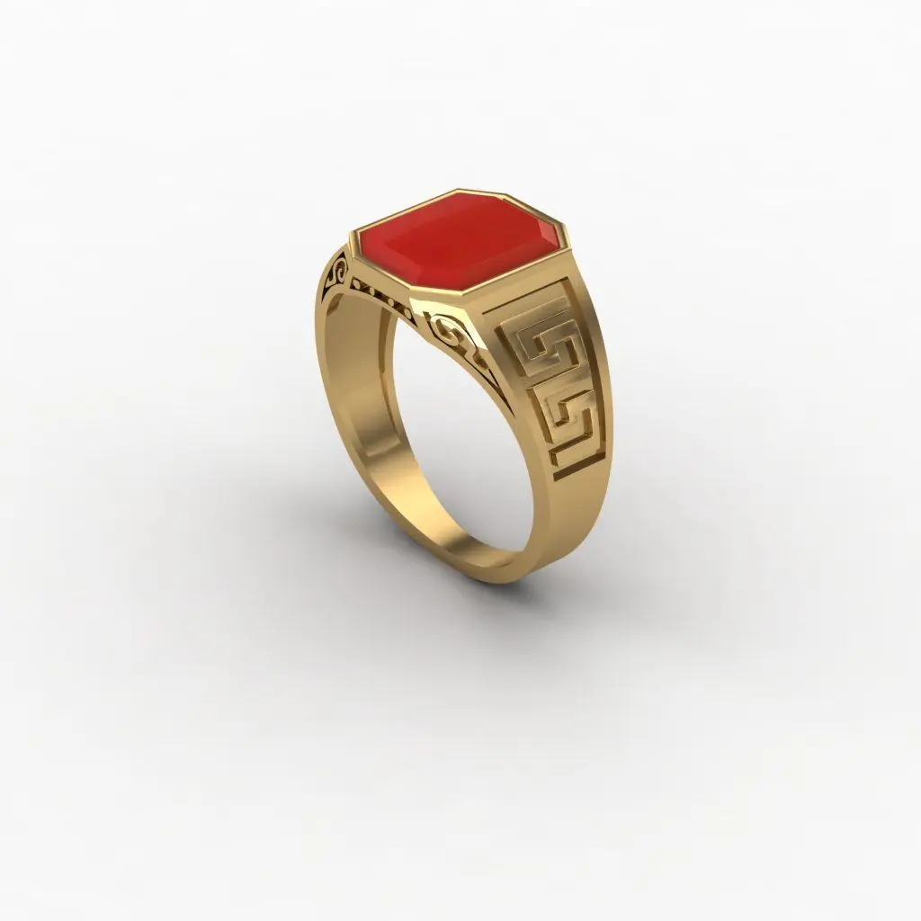 Details on this design:File is checked for errors by Magics software, ready to grow on a 3d printer, rendering and designers usages. Metals are properly constructed for light metal weight without being weak. It is mesh file. This ring can make with gold and silver. It is for men and is solid 3d model.