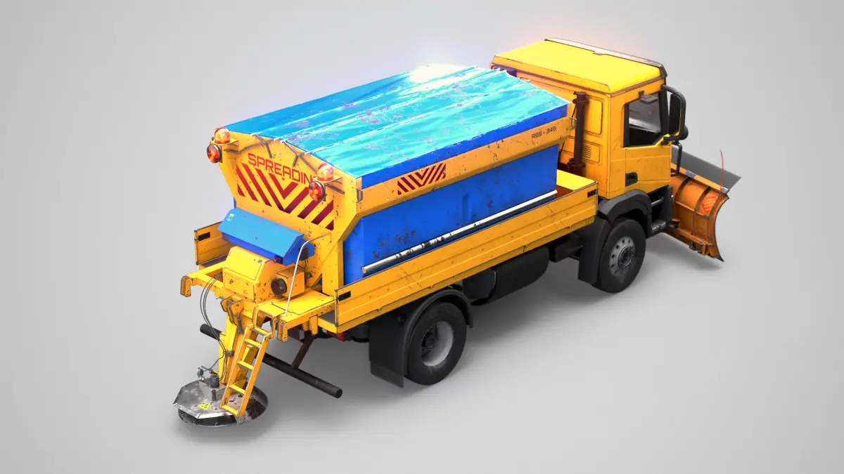 Aged Snow Plow Truck 3D Model - Winter Service Vehicle with Plow and Salt Spreader