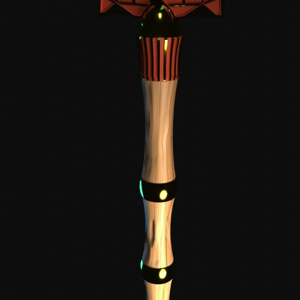 It's Aghanim scepter from Dota 2. The style has been slightly redesigned. Scepter of mystery and a very powerful wizard.The model have not a lot of polygons(u can use it in game), textures, some materials.Its scepter with glowing on the top blue gemstone, staff from wood with some gold details.
