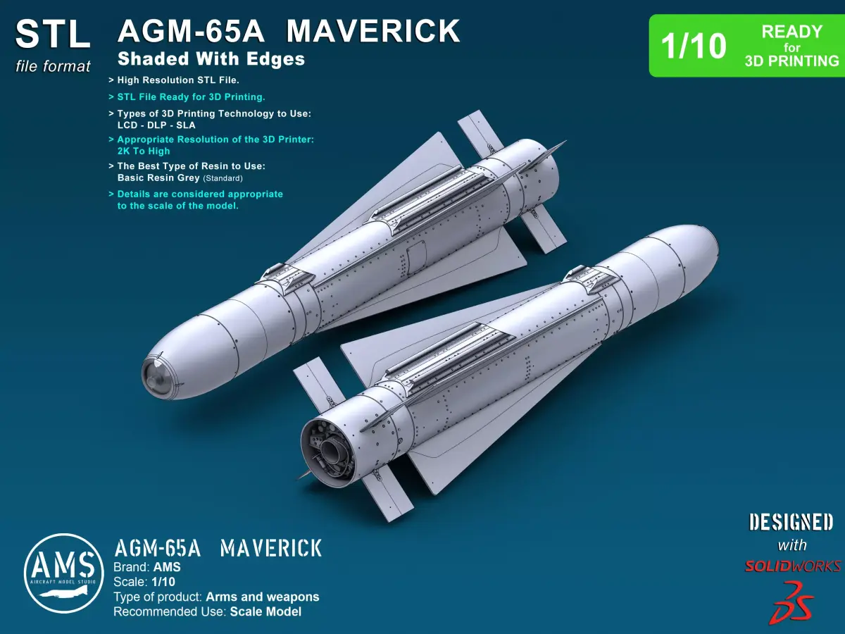 Description:The AGM-65 Maverick is an air-to-ground missile (AGM) designed for close air support. It is the most widely produced precision-guided missile in the Western world, and is effective against a wide range of tactical targets, including armor, air defenses, ships, ground transportation and fuel storage facilities.