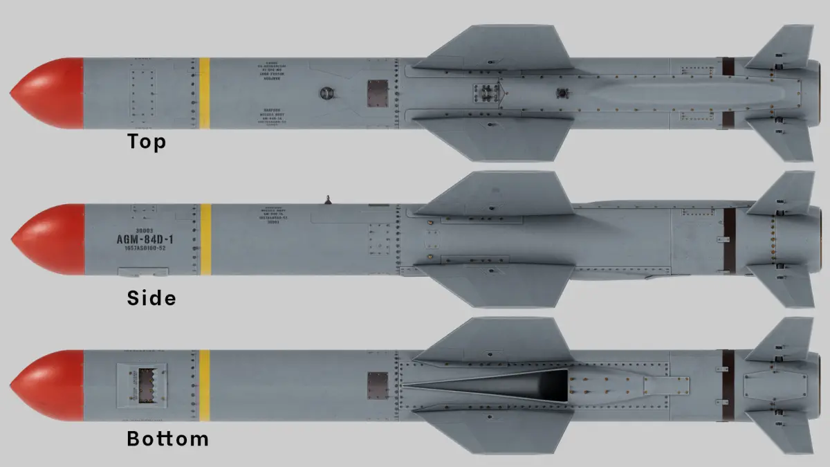 *AGM-84-D “Harpoon” *Aircraft launched, anti-ship missile, manufactured by Boeing Defense, Space & Security.