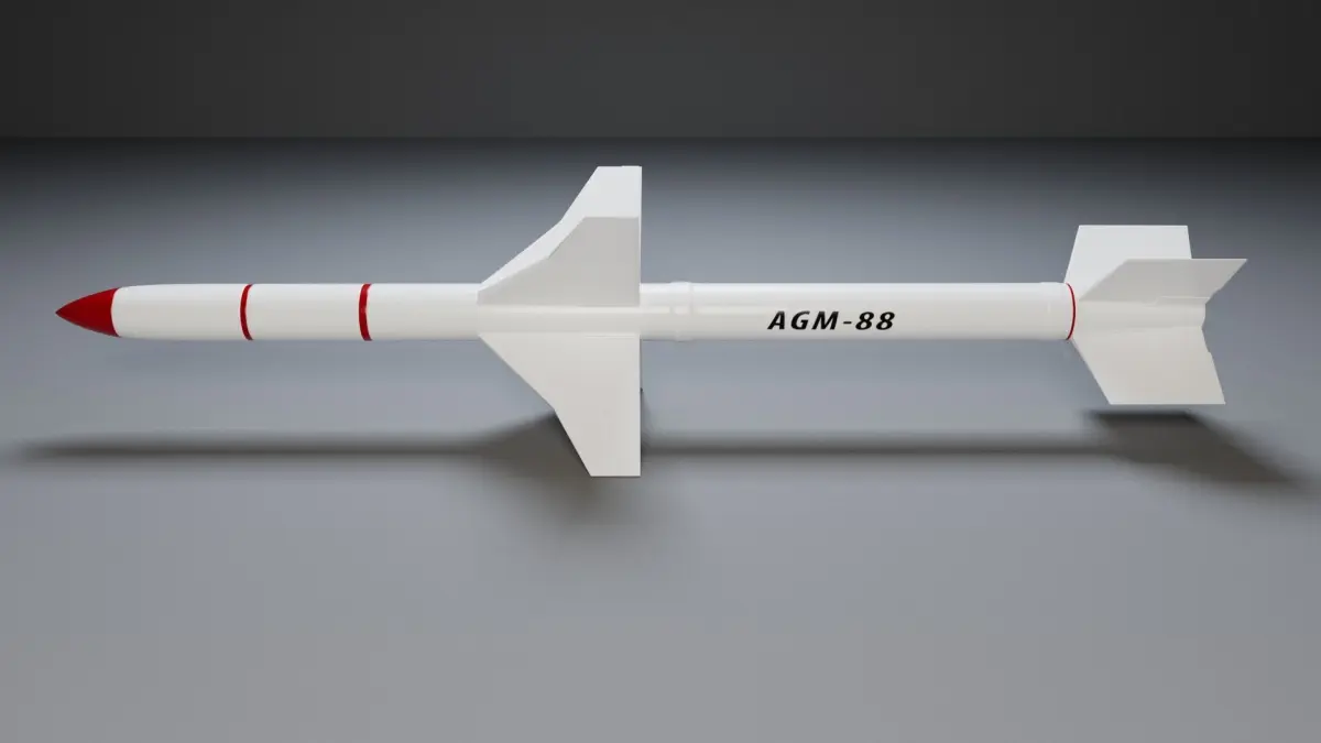 3d model of AGM-88 Missile. The file contains textures maps, color maps and meshes. Materials are not included in the file. Preview images are rendered with v-ray materials and lights.