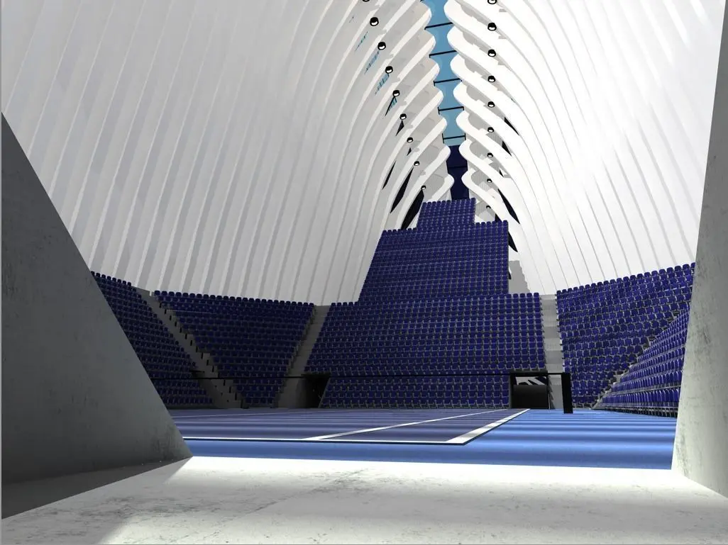 The Agora is a tennis arena. It has the tennis court with seating on the inside (See photos).