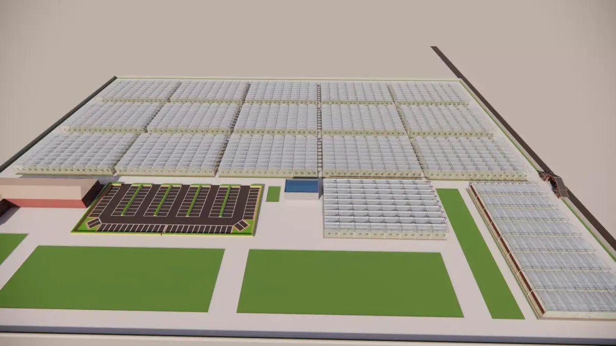 A model of a Glasshouse Warehouse .Model created for visualization and realistic look.