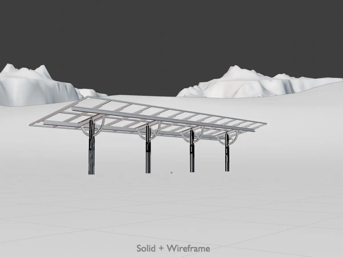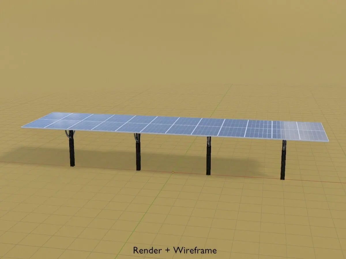 - Here, you can see a 3D model of an agrivoltaic solar system.