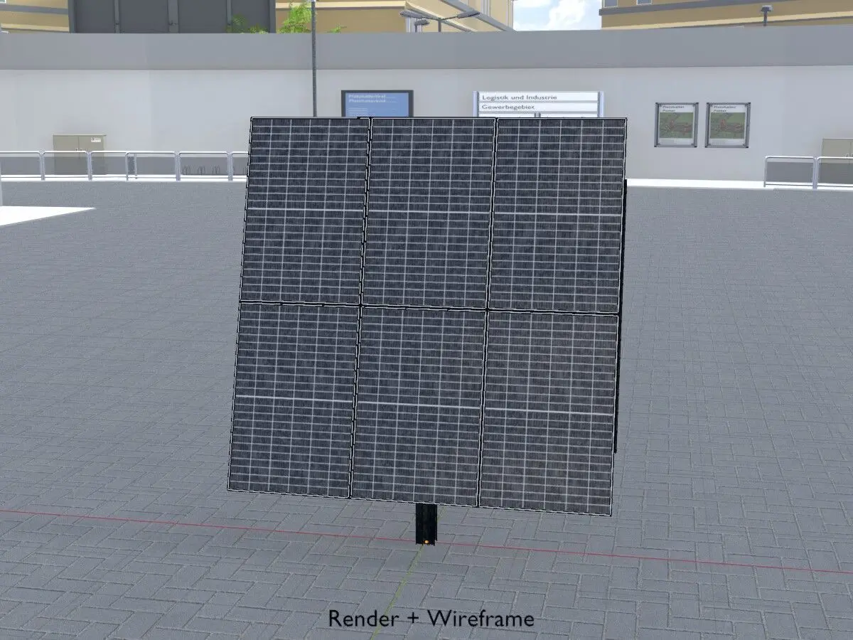 - Diese Agri-Photovoltaik-Solaranlage wurde für Echtzeitanwendungen wie 3D-Visualisierungen oder Computerspiele entwickelt und optimiert.