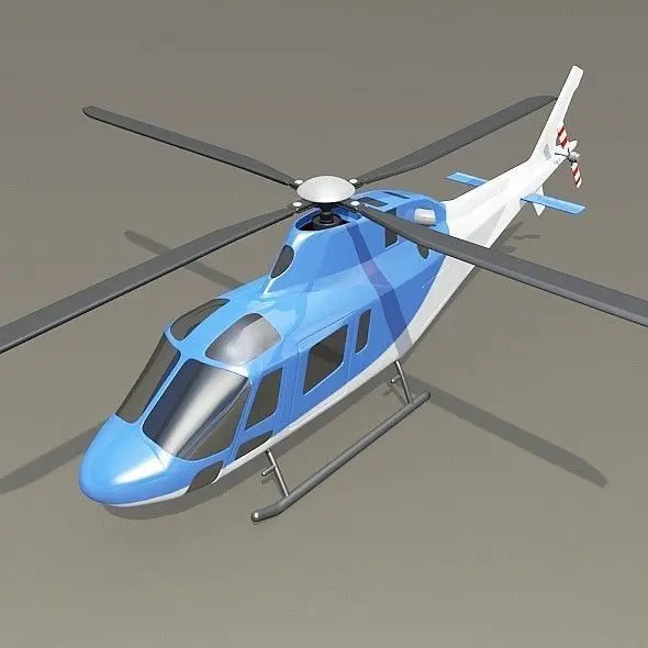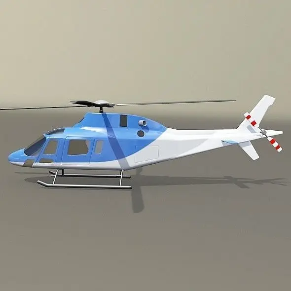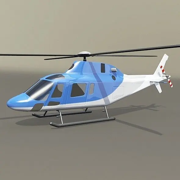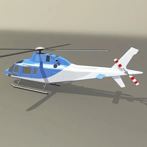 Not very detailed 3d model of Agusta Westand aw119 Koala was created with blender 3d 2.77 version.Rendering preview images was created with blender internal render,settings included with blender file.There are 2 textures projected from side view for this product.One for copter body with blue,gray and with white stripes and second texture is for grill parts.I've named my objects in material and in object section.There are no interior objects for this product.Most of the objects detached,but not rigged.Enjoy my product